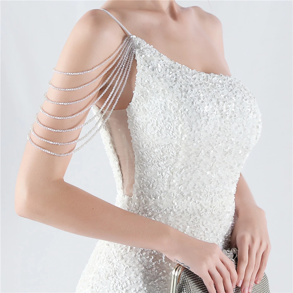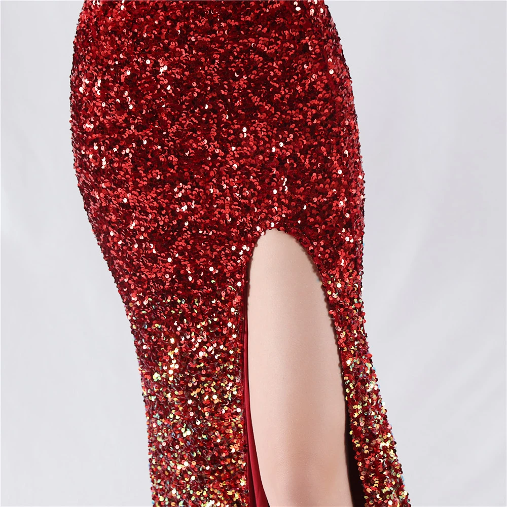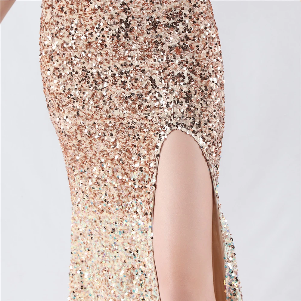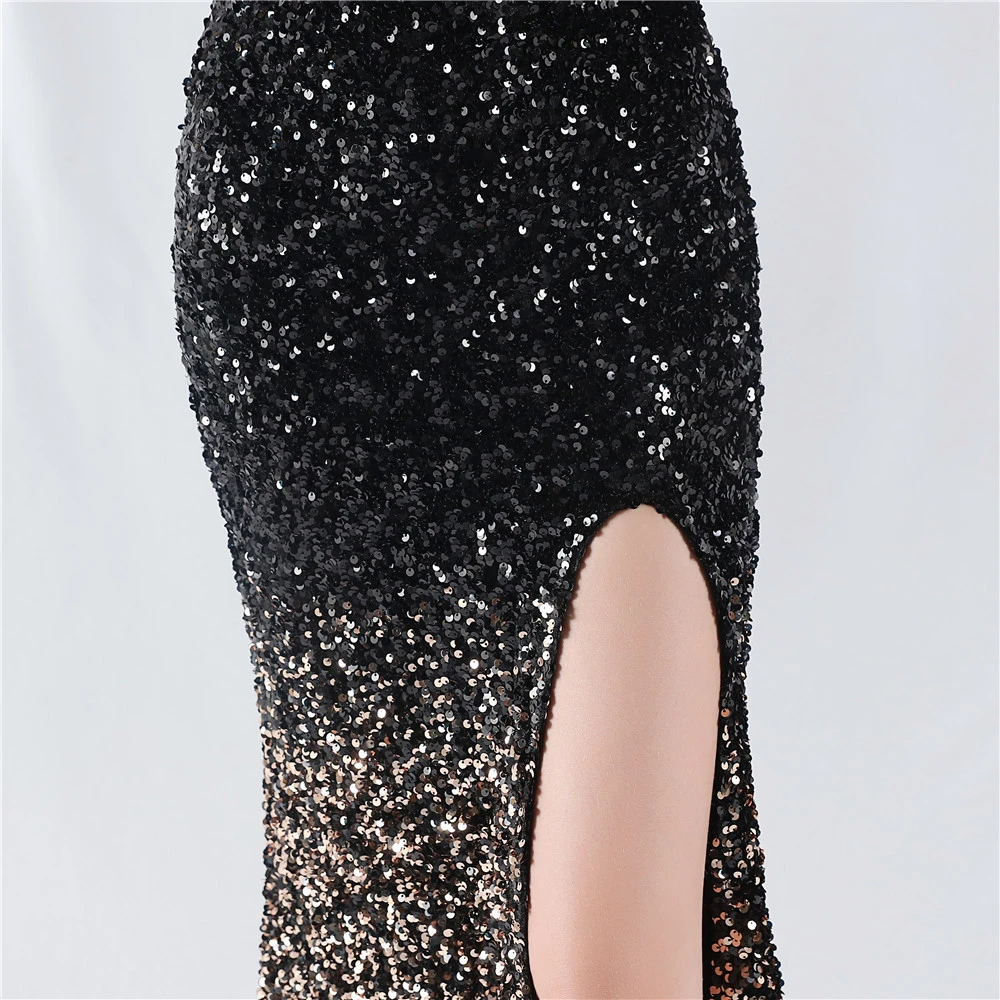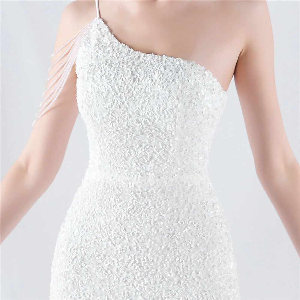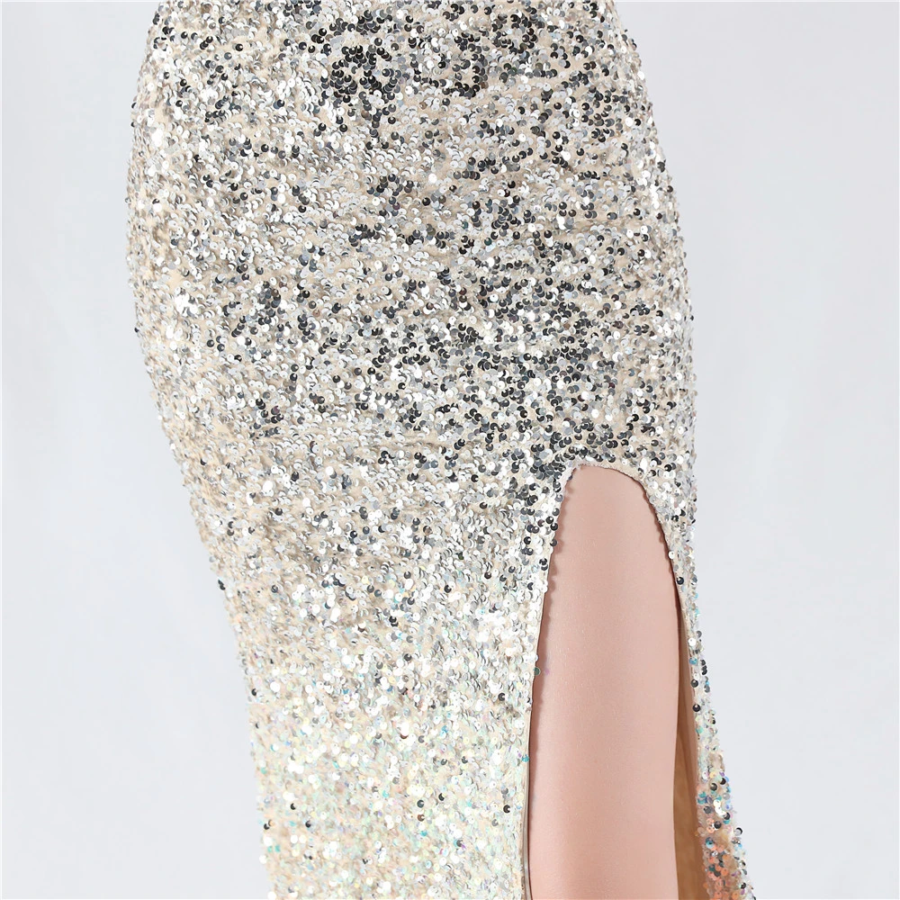 High-Density Gradient Velvet-Bottom Sequined One-Shoulder Beaded Suspender Evening Dress