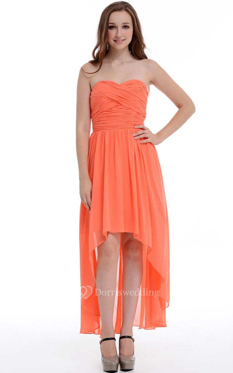 High-low Asymmetrical Sweetheart Chiffon Dress With Ruffles