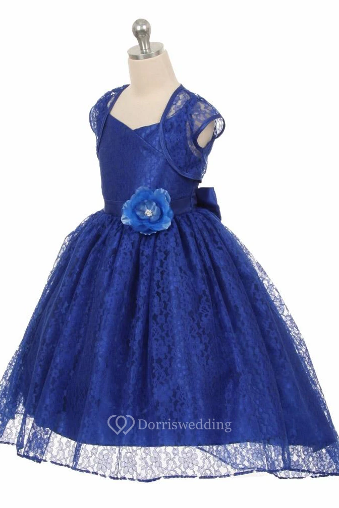 High-Low Criss-Cross Floral Lace Flower Girl Dress With Sash