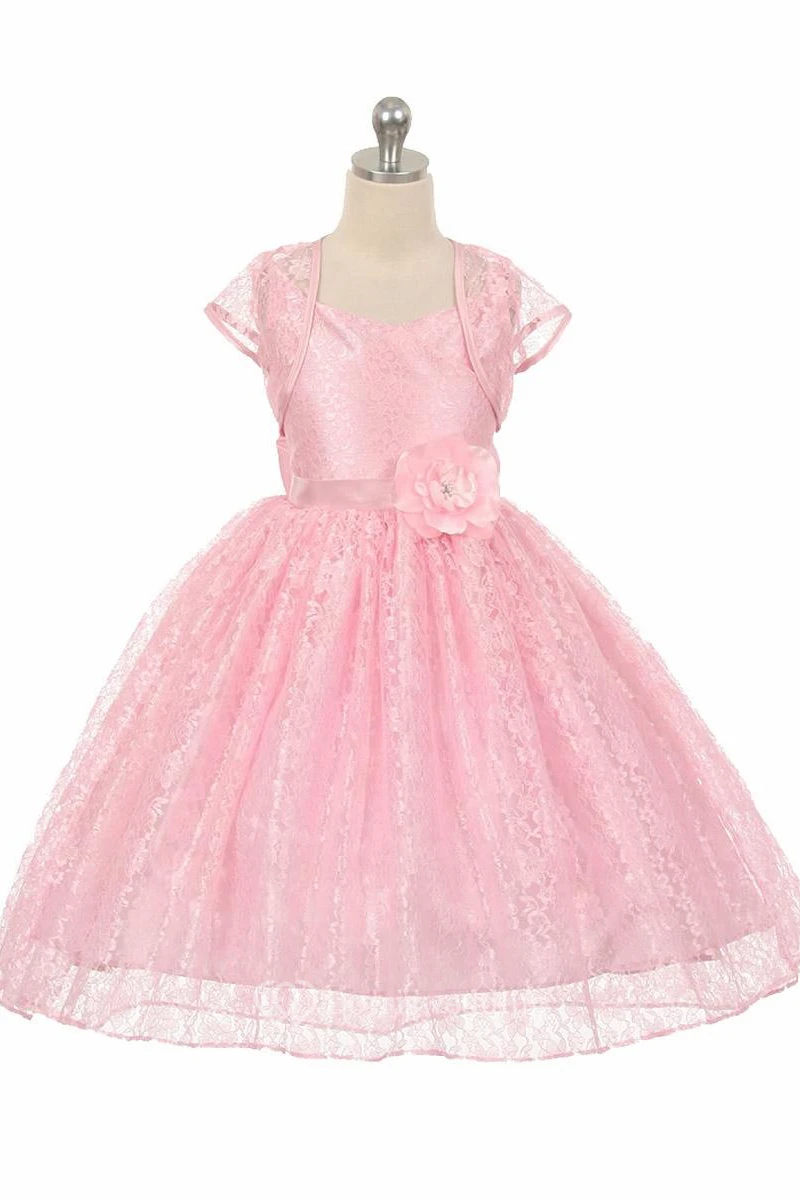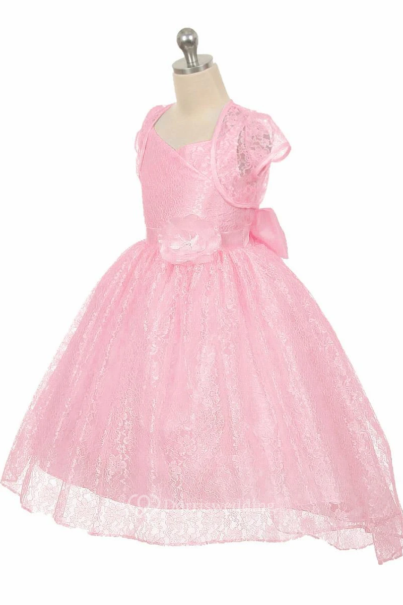 High-Low Floral Criss-Cross Lace Flower Girl Dress With Sash