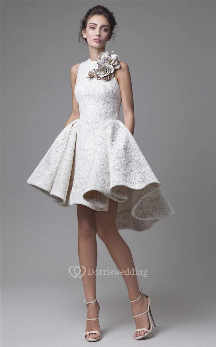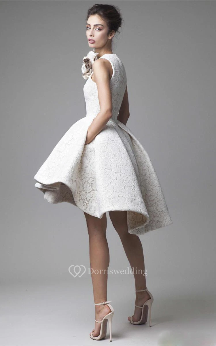 High Low Jewel Neckline A-Line Flower Appliqued Party Dress
