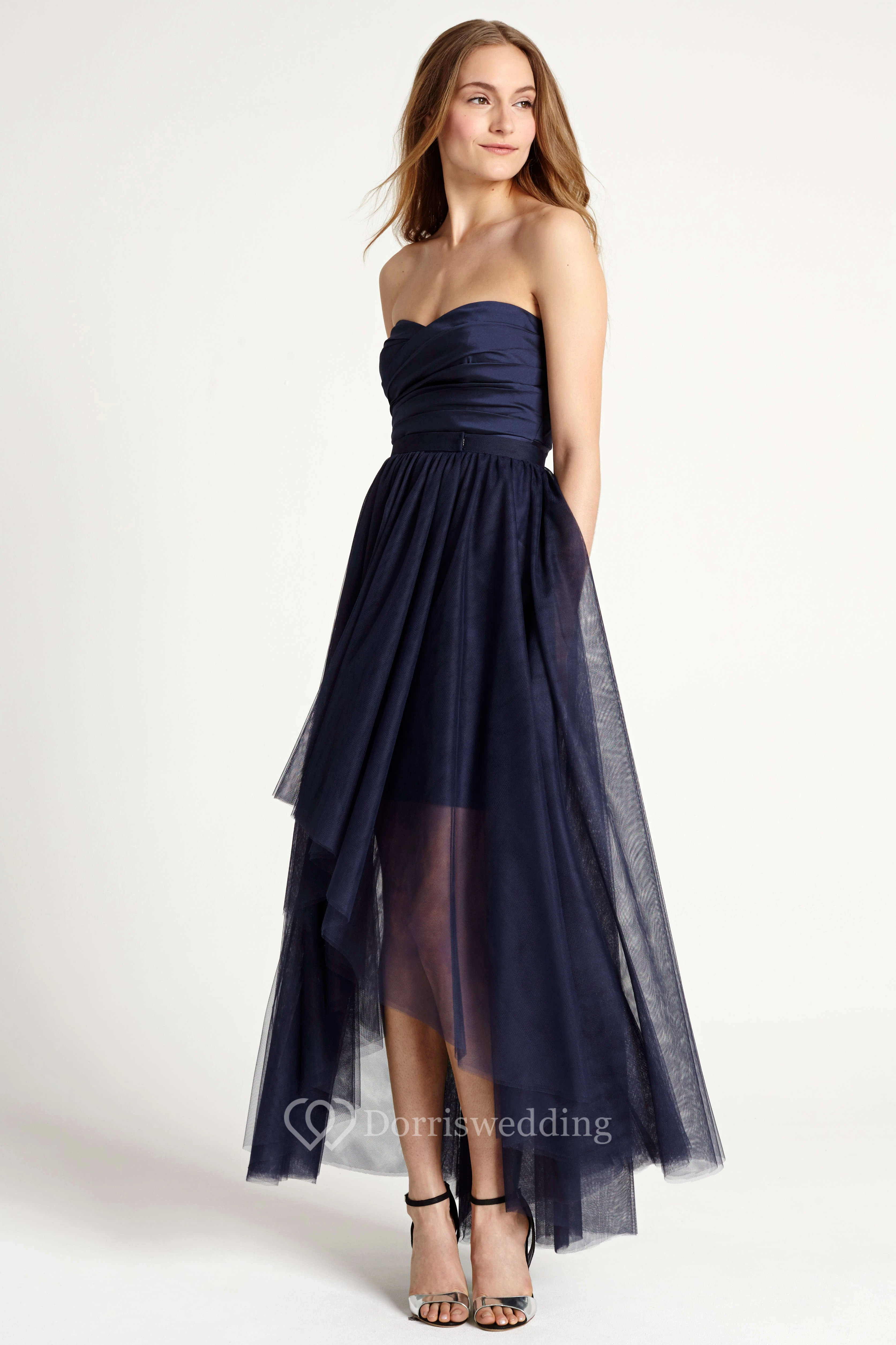 High-Low Ruched Strapless Tulle Bridesmaid Dress