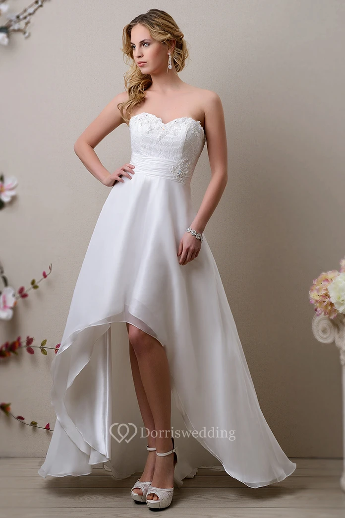 High-Low Sweetheart A-Line Wedding Dress Featuring Lace Bodice
