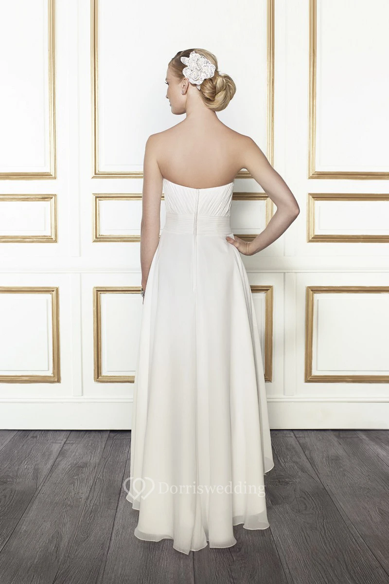 High-Low Sweetheart Criss-Cross Broach Chiffon Wedding Dress With Draping And V Back