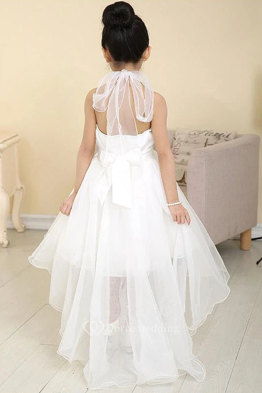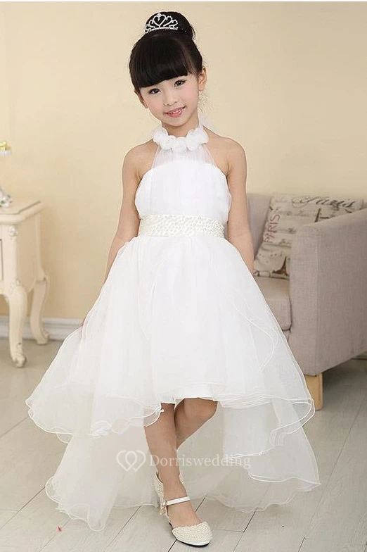 High-Low Tulle Halter Sleeveless Beading Flower Girl Dress