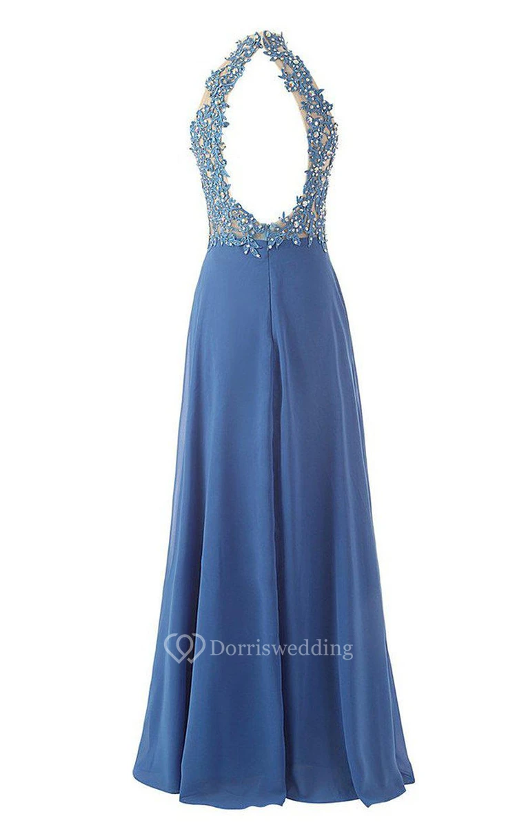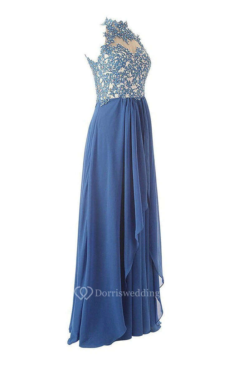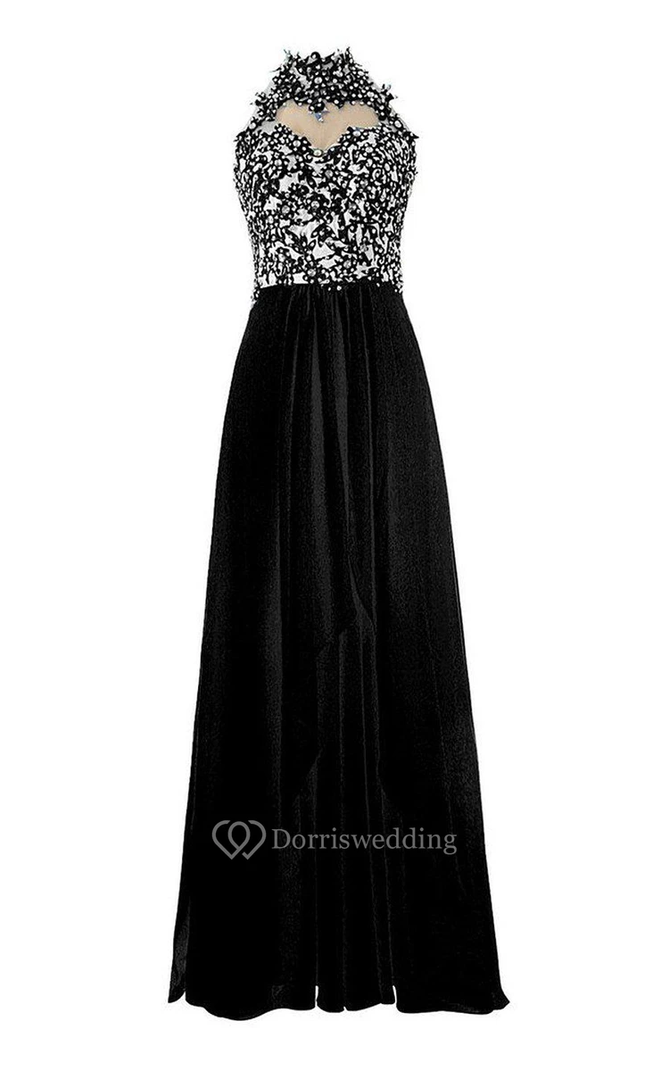 High-neck A-line Dress With Beadings and Keyhole