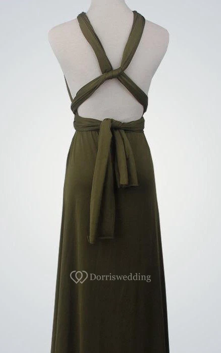 High Neck A-line Jersey Floor Length Dress With Back Cross Straps
