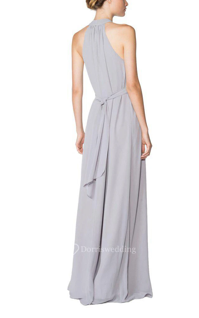 High-neck A-line Long Chiffon Dress