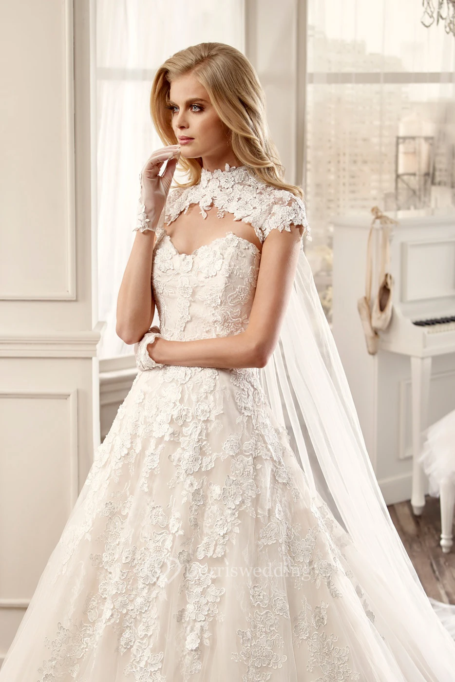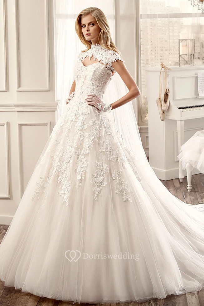 High-Neck A-Line Wedding Dress With Appliques And Keyhole Back