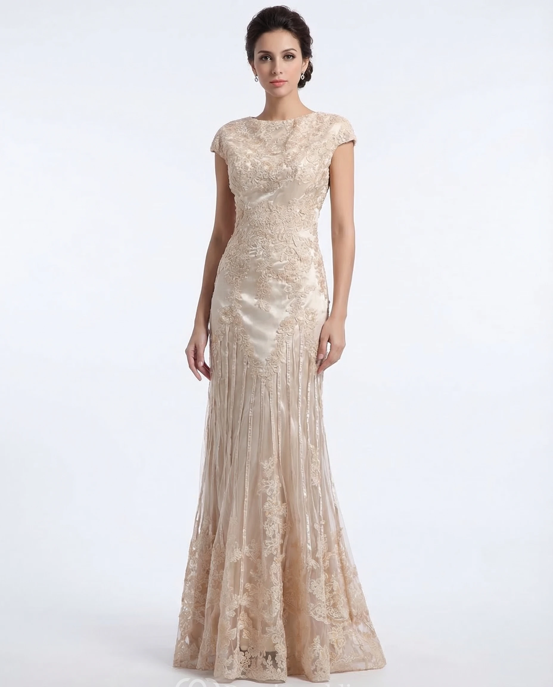 High-Neck Column Maxi with Lace Appliques