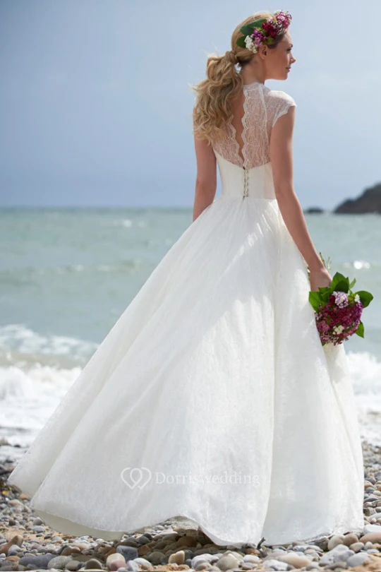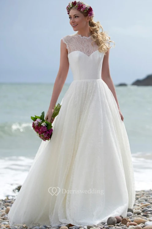 High Neck Floor-Length Lace Simple Wedding Dress With Illusion
