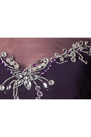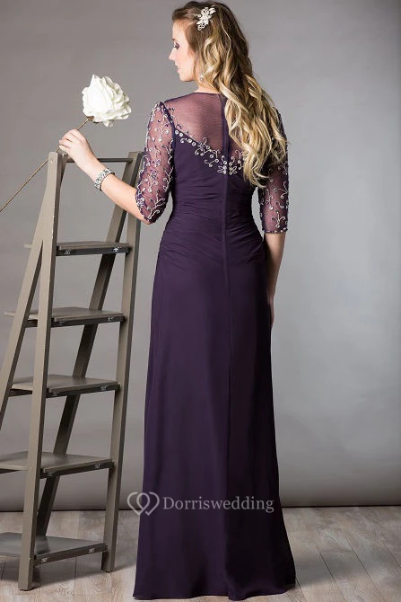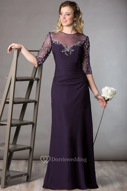 High Neck Half Sleeve Sheath Long Mother Of The Bride Dress With Embroidery And Crystal