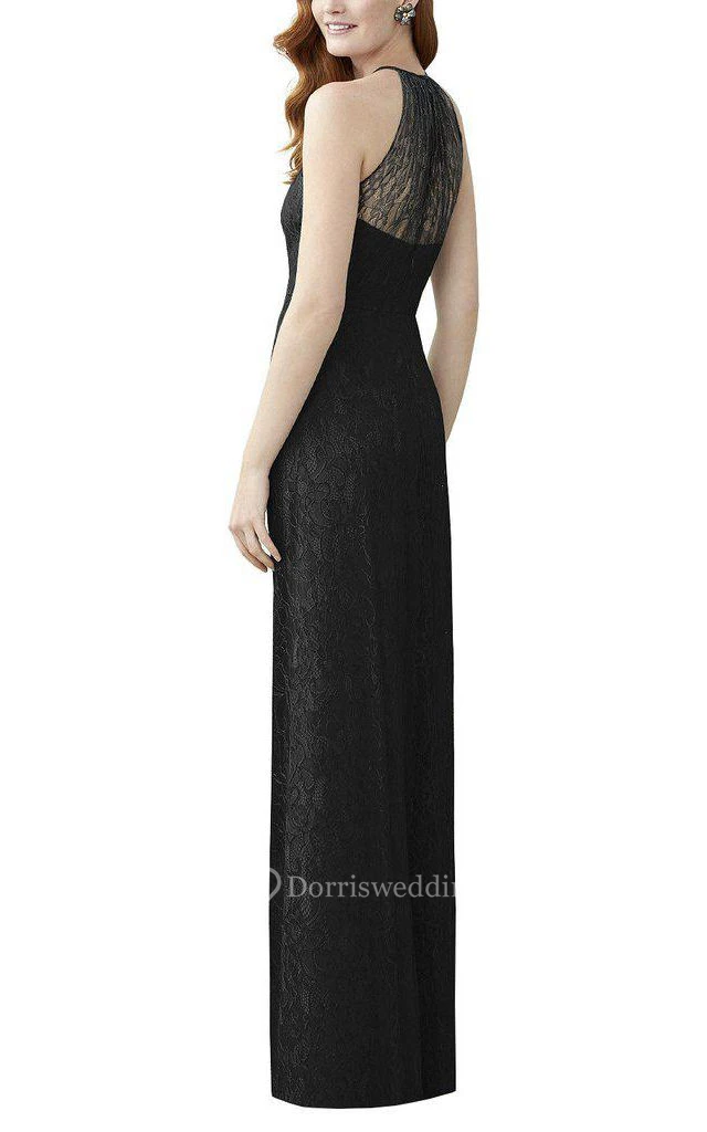High-neck Illusion Lace Long Bridesmaid Dress
