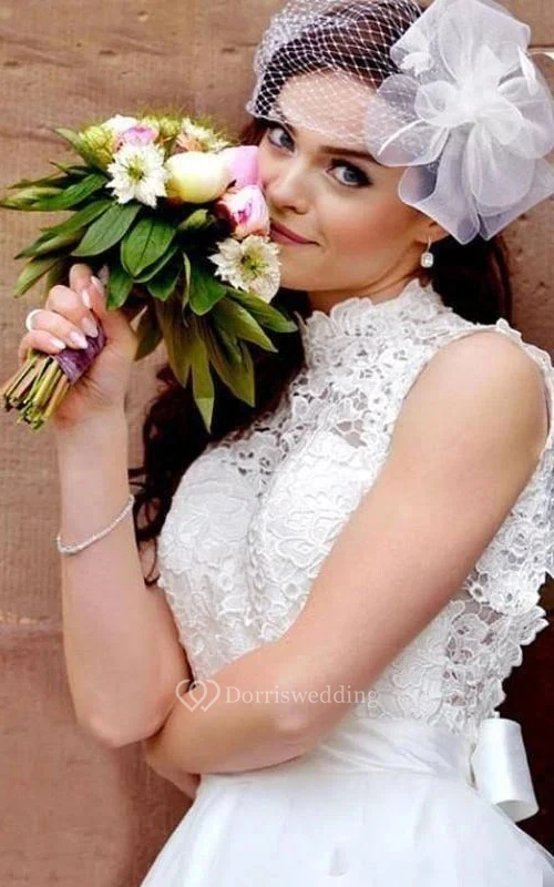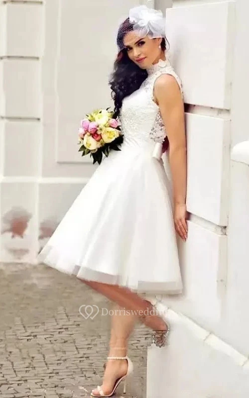 High-neck Lace Keyhole A-line Knee-length Wedding Dress