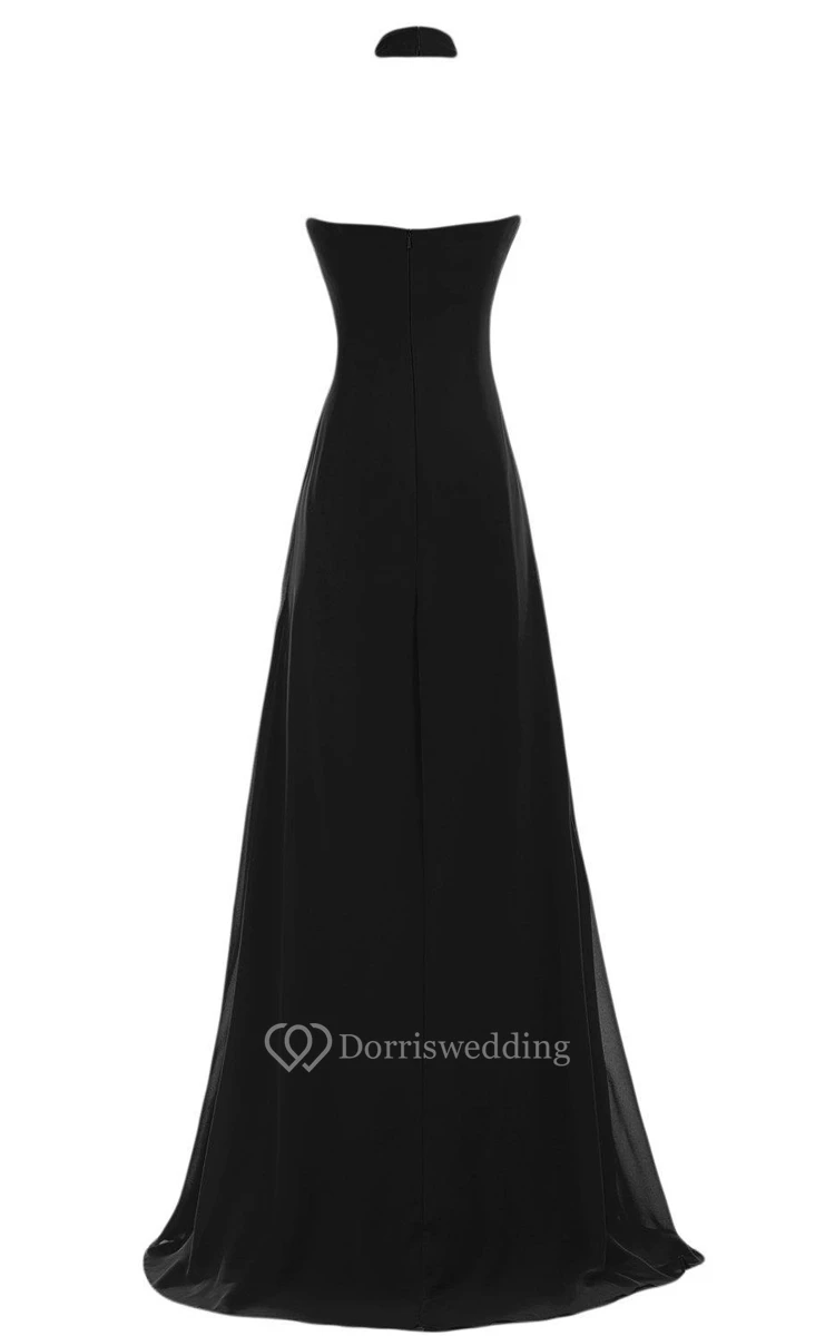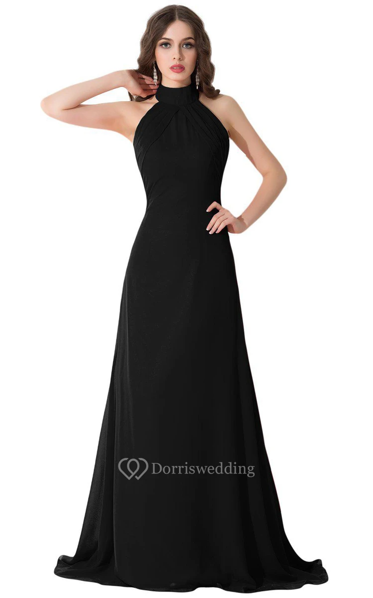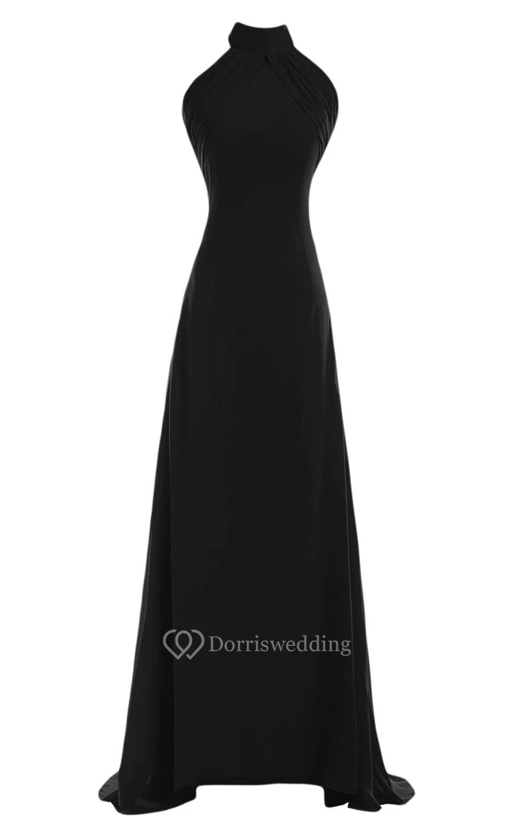 High-neck Long Chiffon Dress With Open Back