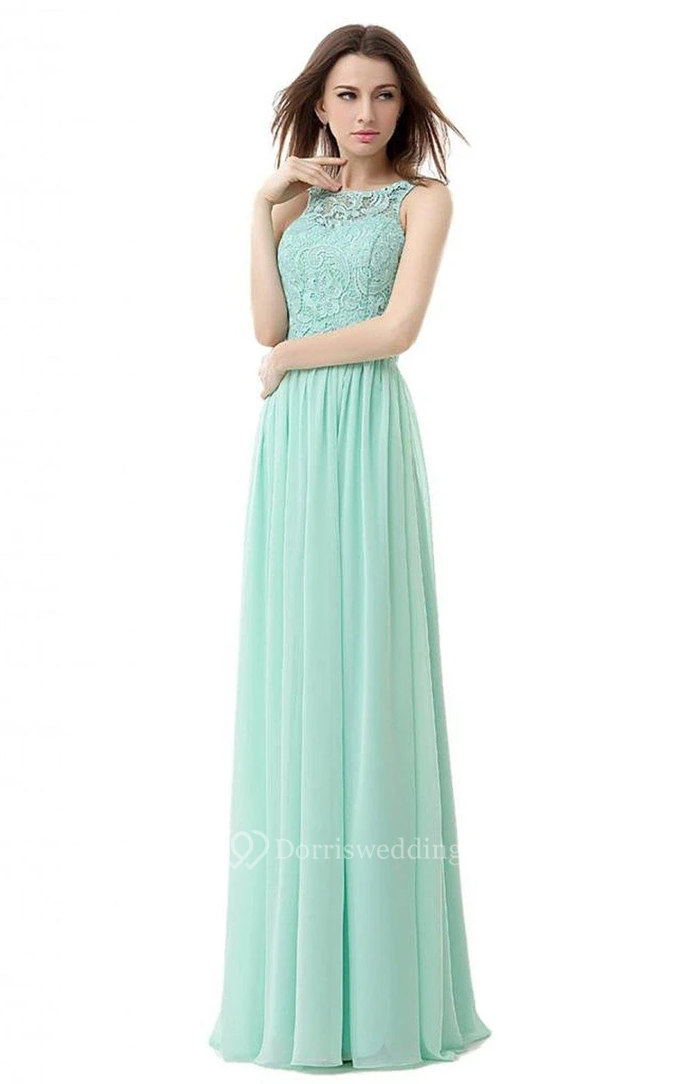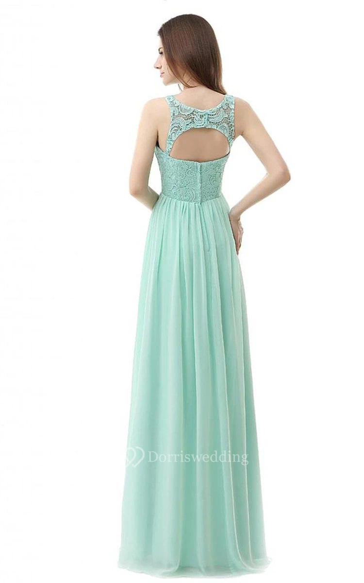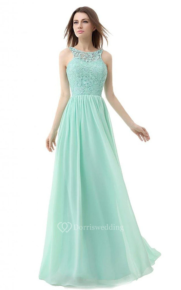 High-neck Long Gown With Lace Detail Bodice
