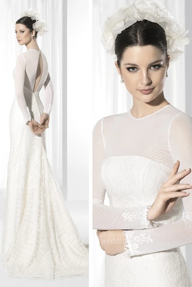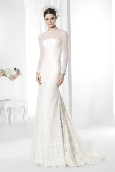 High Neck Maxi Appliqued Long-Sleeve Lace Wedding Dress