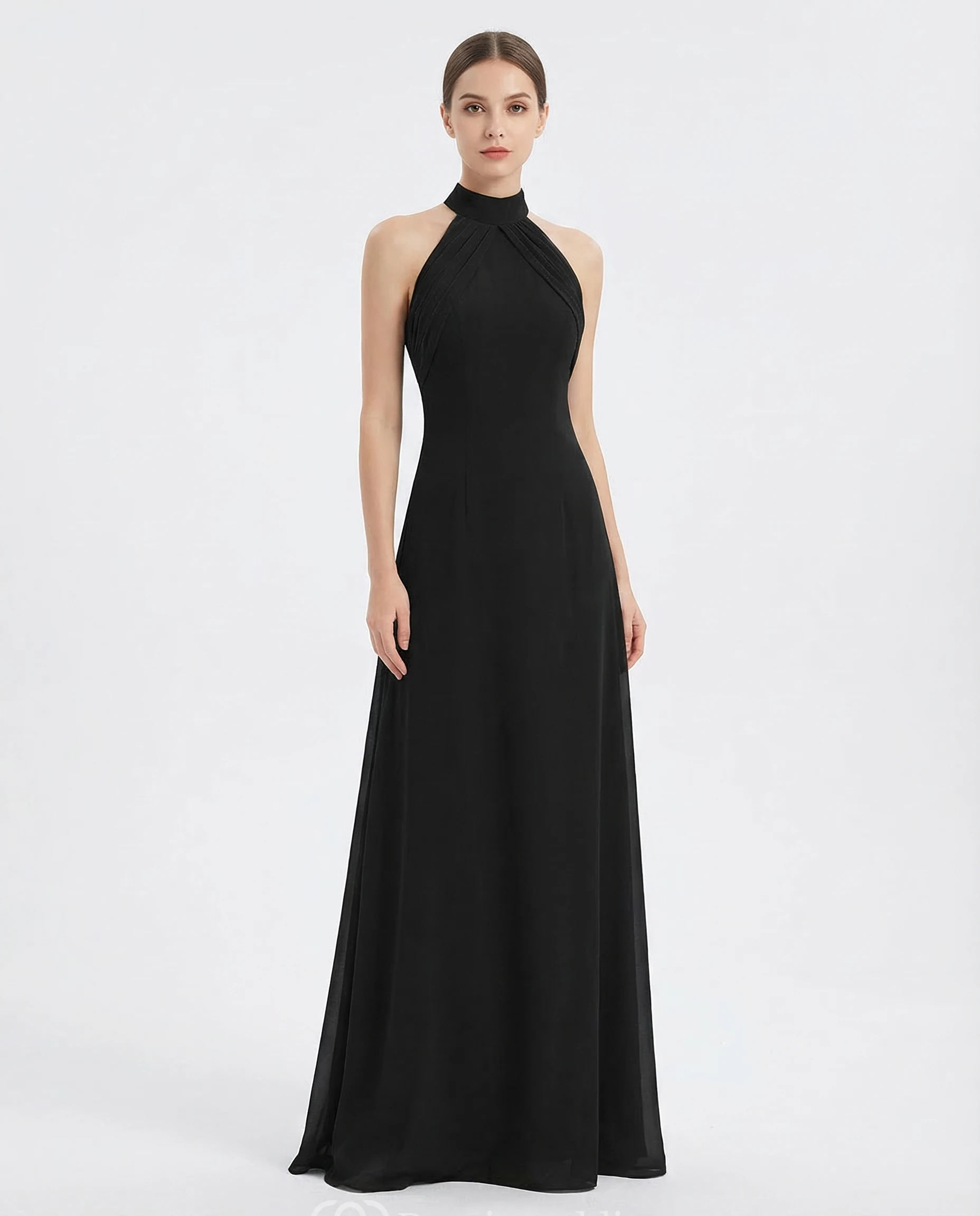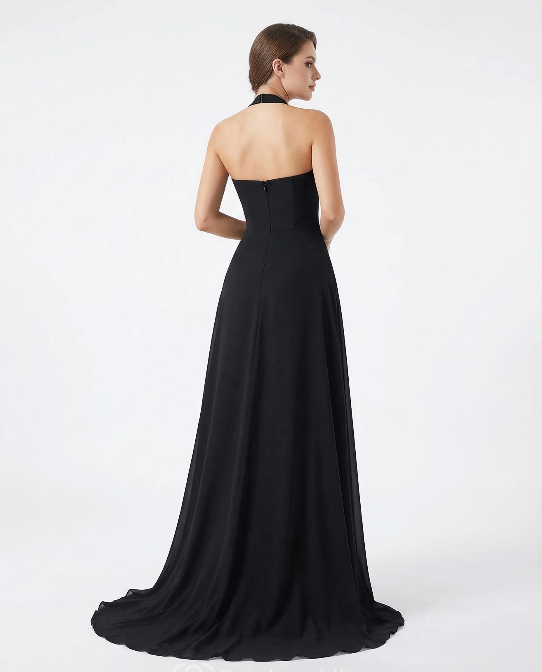 High-Neck Open Back Chiffon Evening Gown