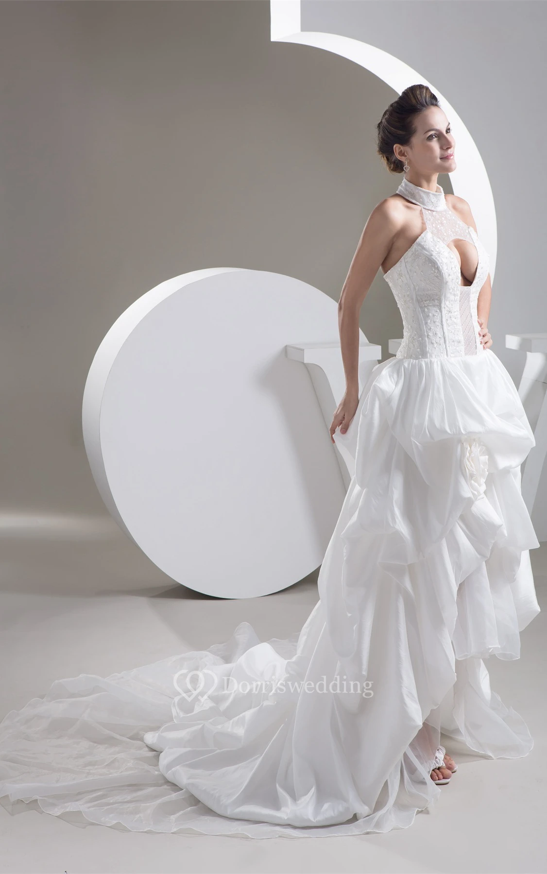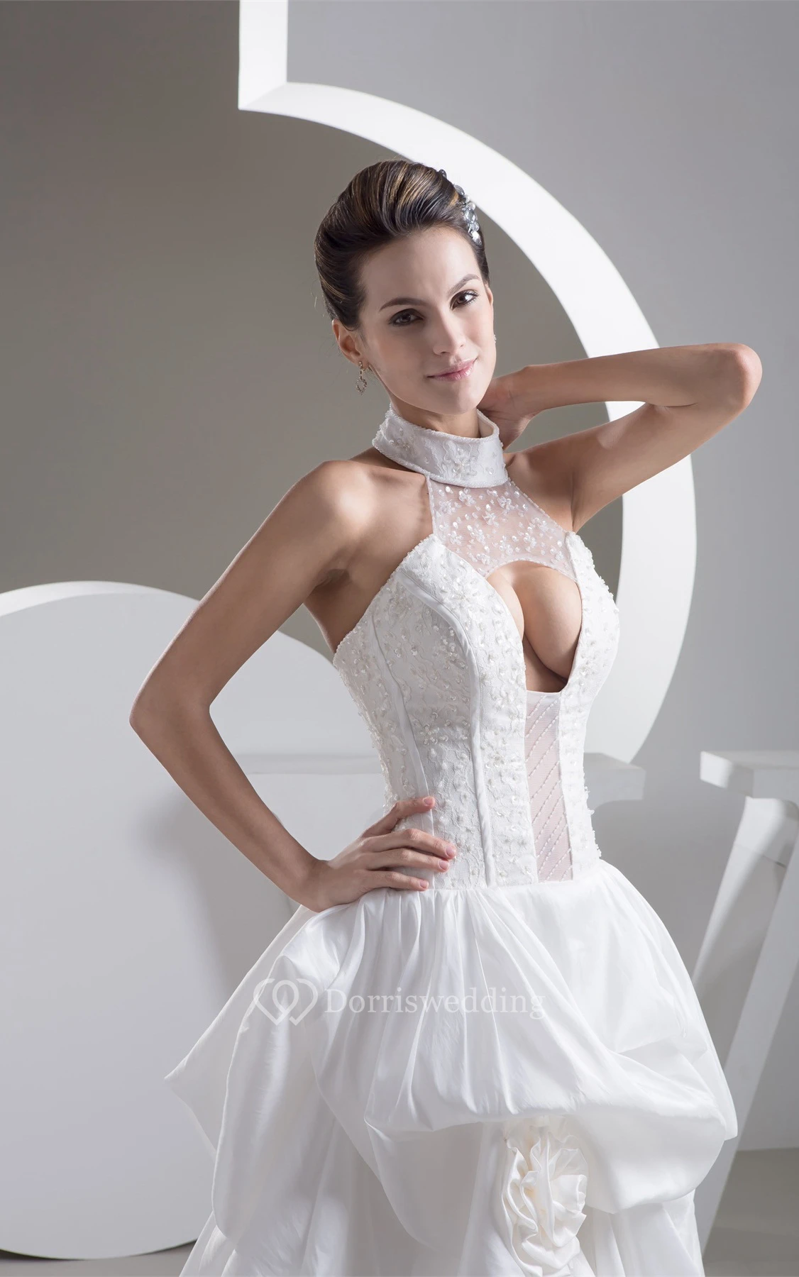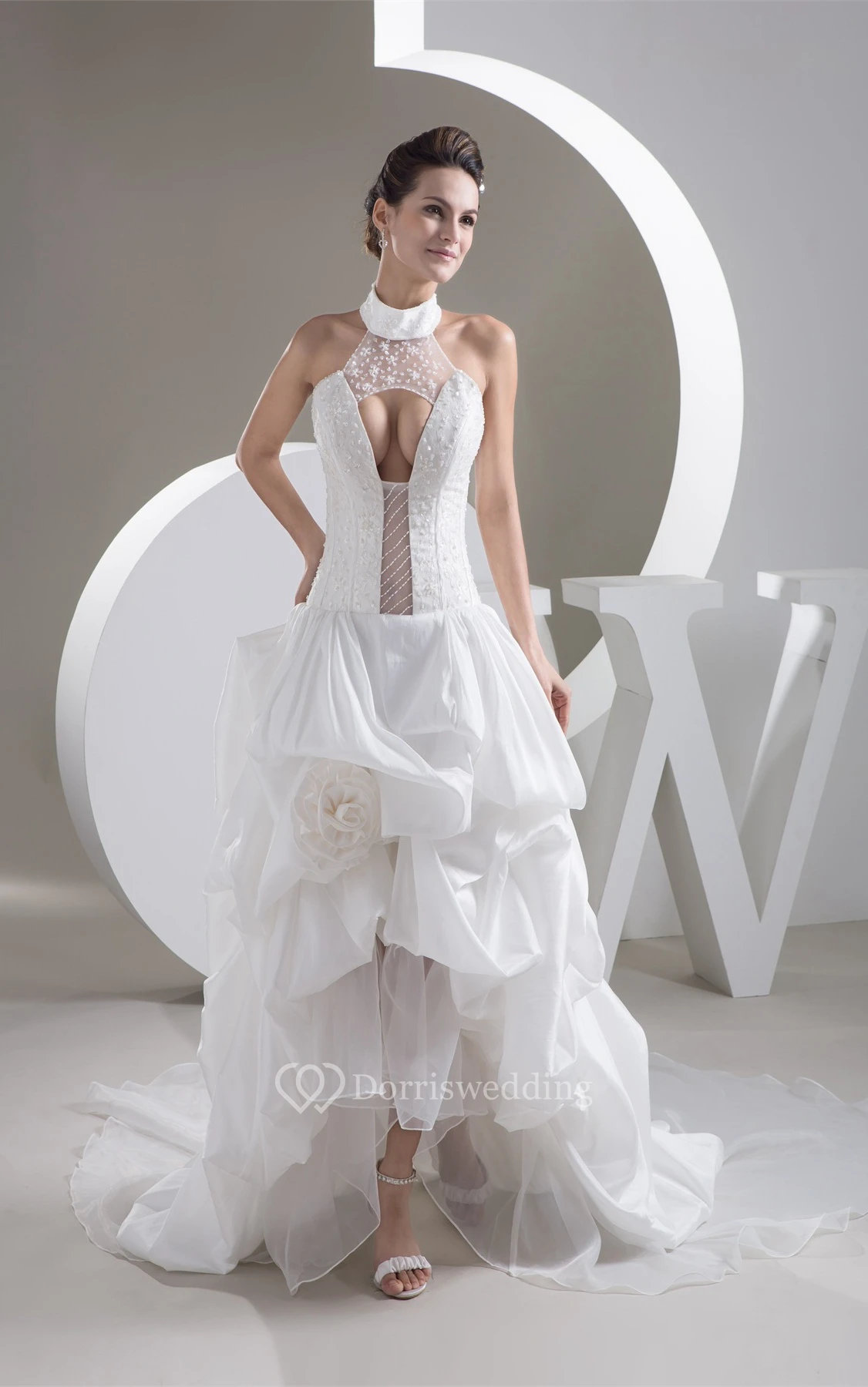 High-Neck Pick-Up High-Low Sleeveless Flower and Dress With Keyhole