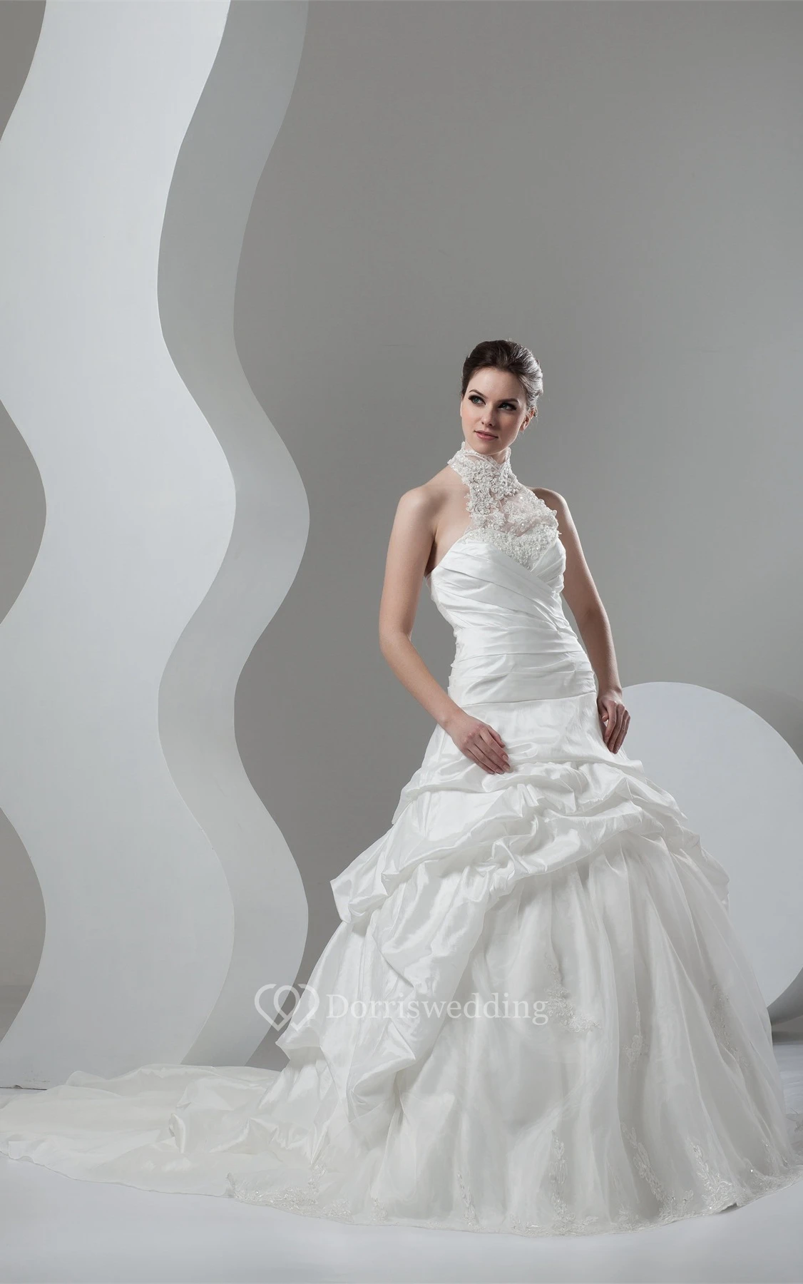 High-Neck Pick-Up Sleeveless Lace and Gown With Beading