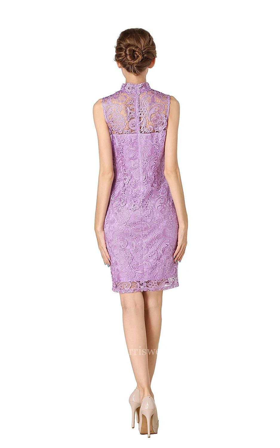 High-neck Short Lace Dress with Floral Detail and Illusion