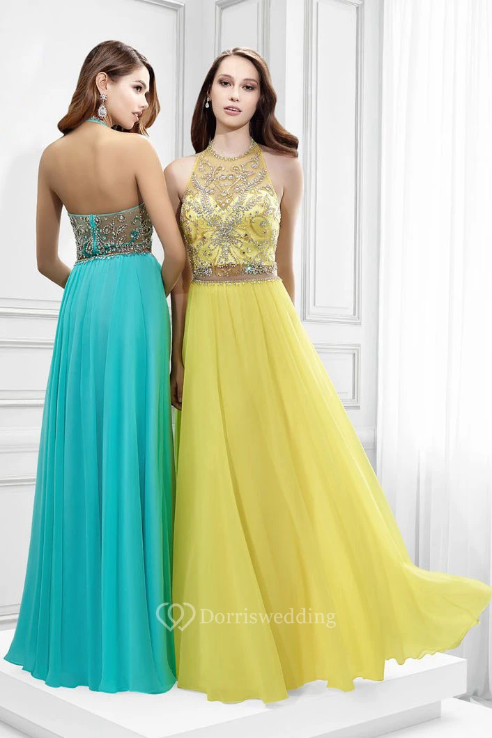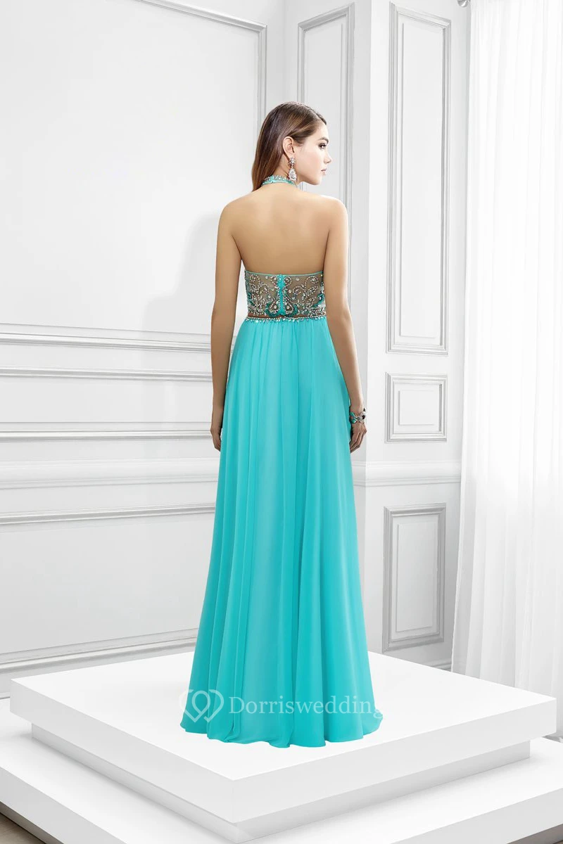 High Neck Sleeveless Crystal Tulle Prom Dress