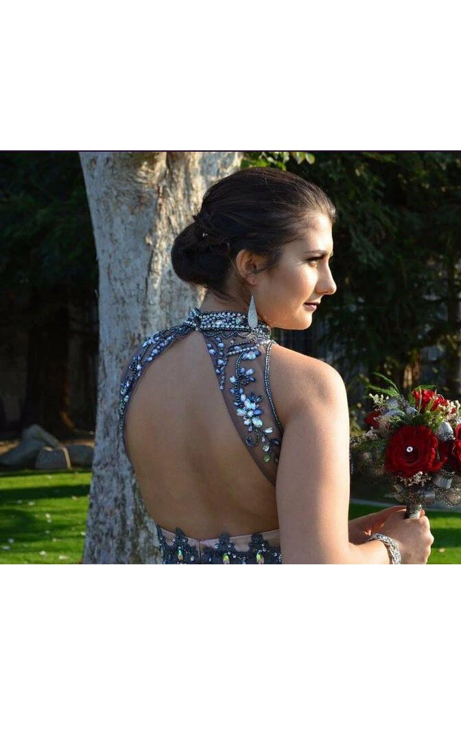 High Neck Sleeveless Long Pleats Satin Tulle Dress