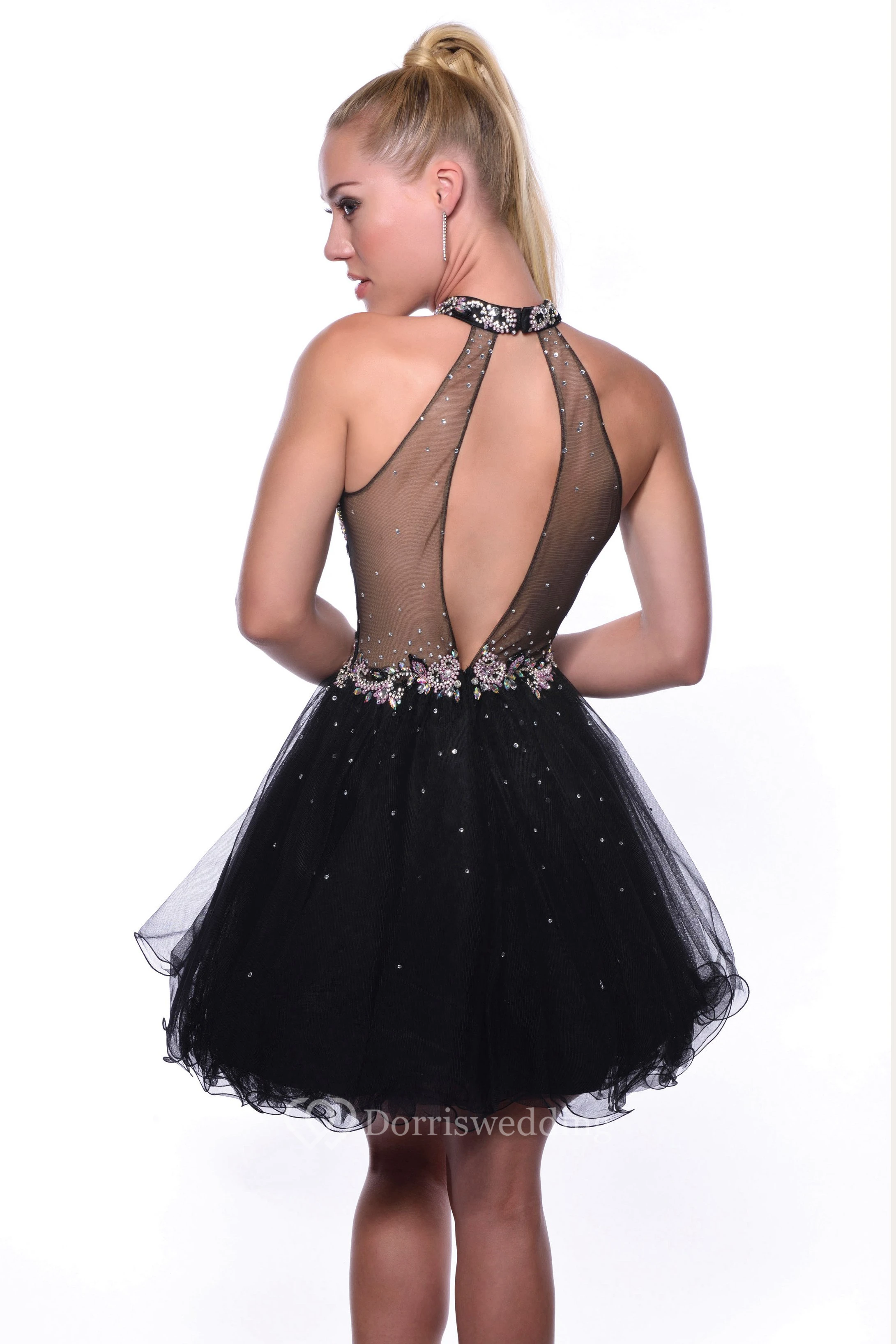 High Neck Sleeveless Short Tulle Homecoming Dress With Crystal Detailing