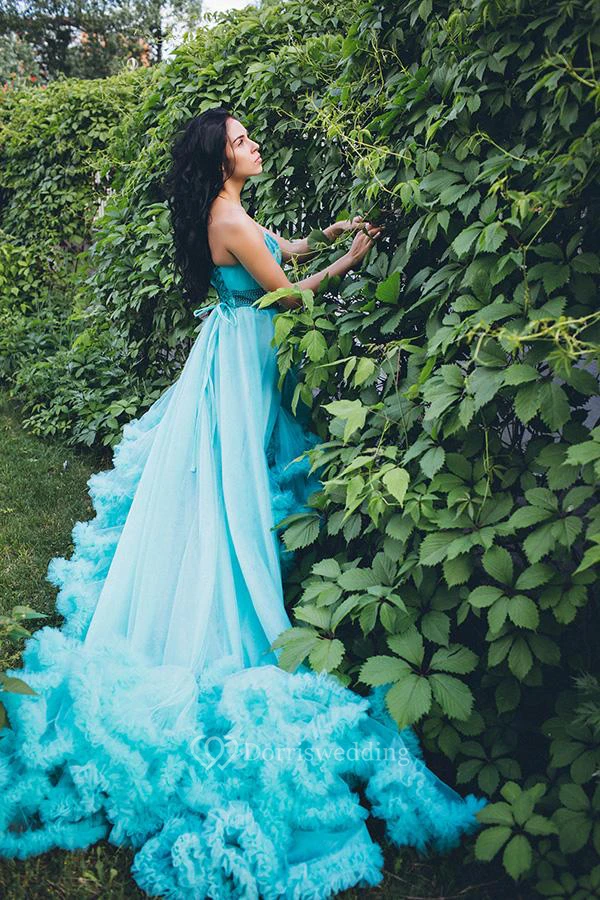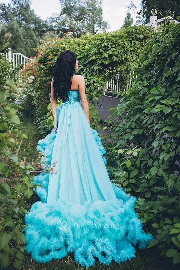 Semi-Sweetheart Cloud Prom Dress Beadings Appliques With Train