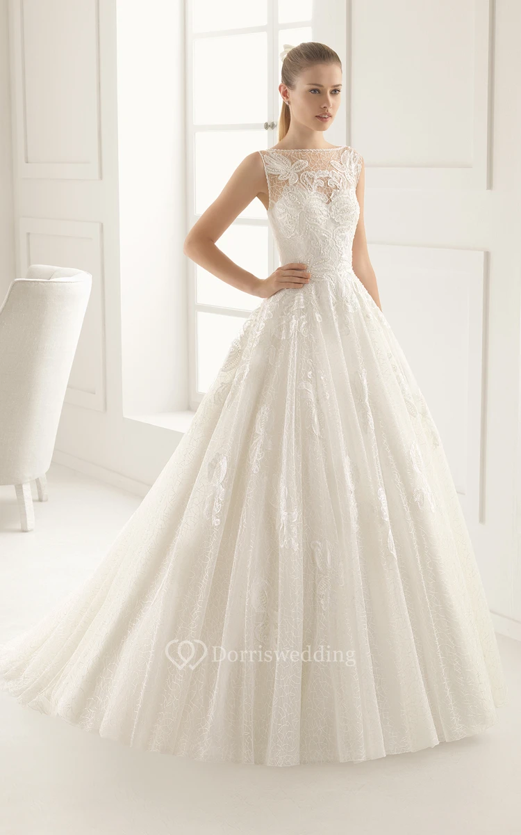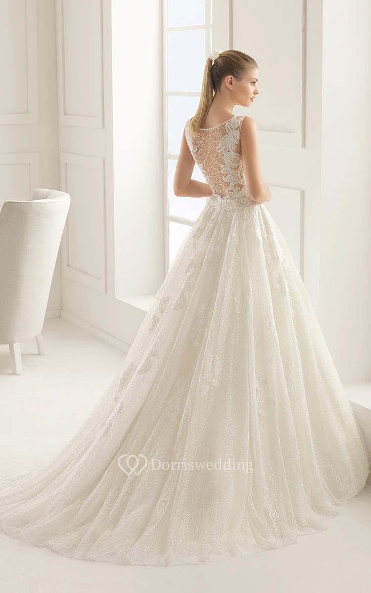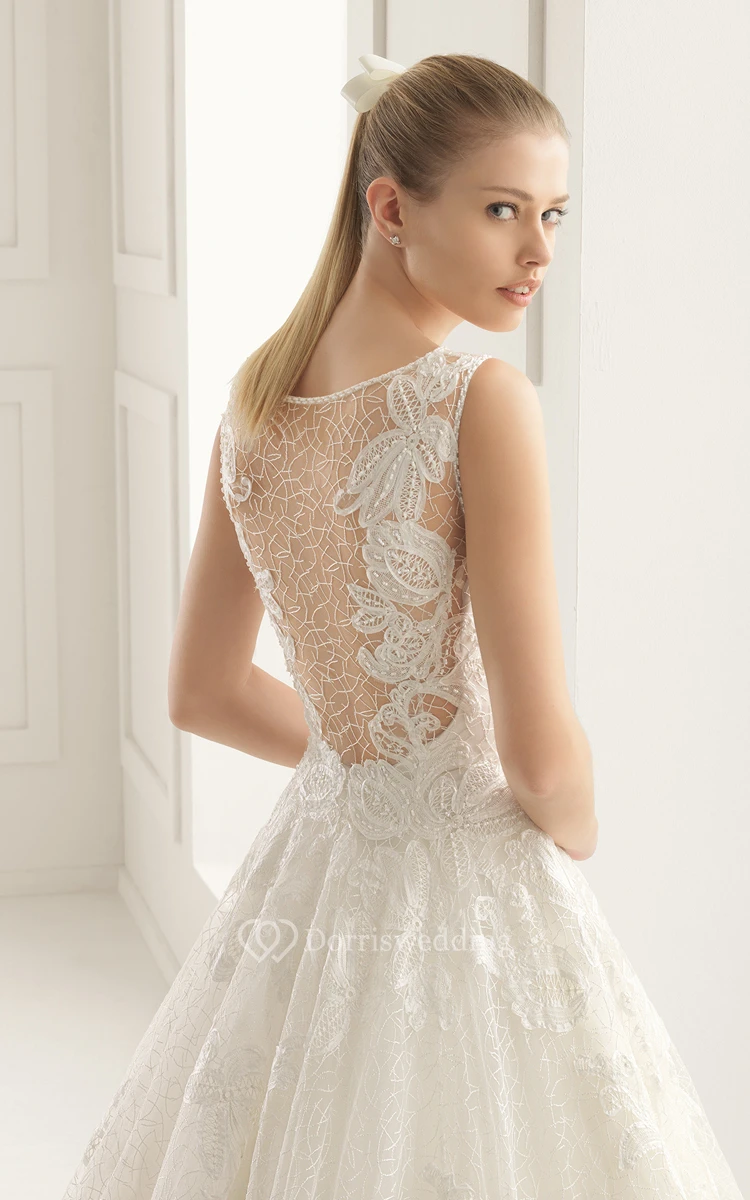 Illusion Back Bateau-Neck Dress With Lace Appliques