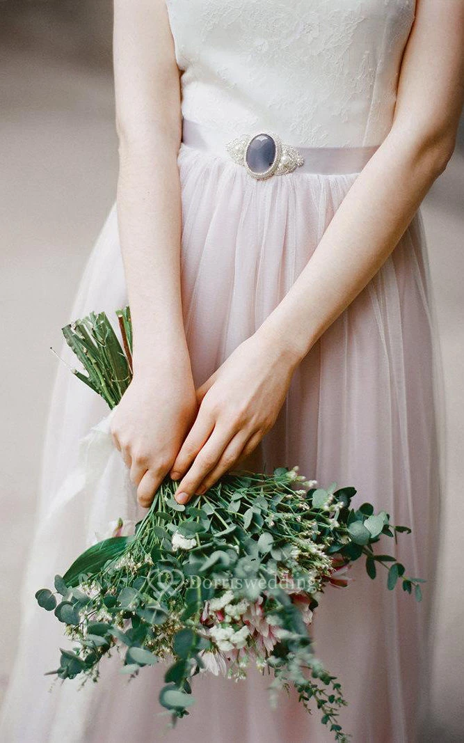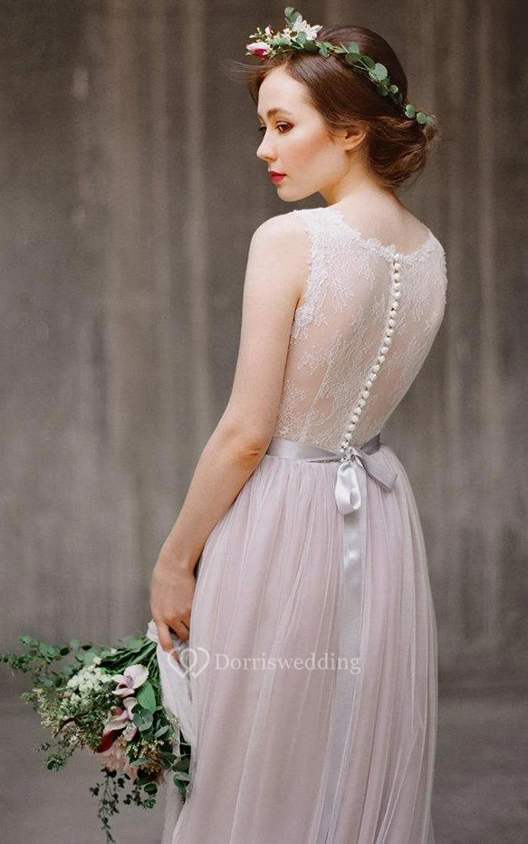 Illusion Back Tulle and Lace Dress With Ribbon