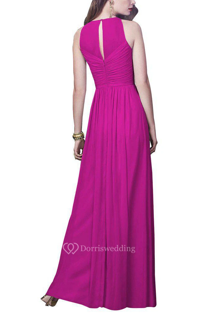 Illusion Jewel Neck Long Chiffon Dress with Front Split