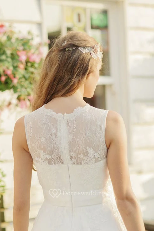 Illusion Jewelry Neckline A-line Sleeveless Knee-length Lace Wedding Dress