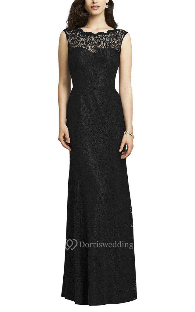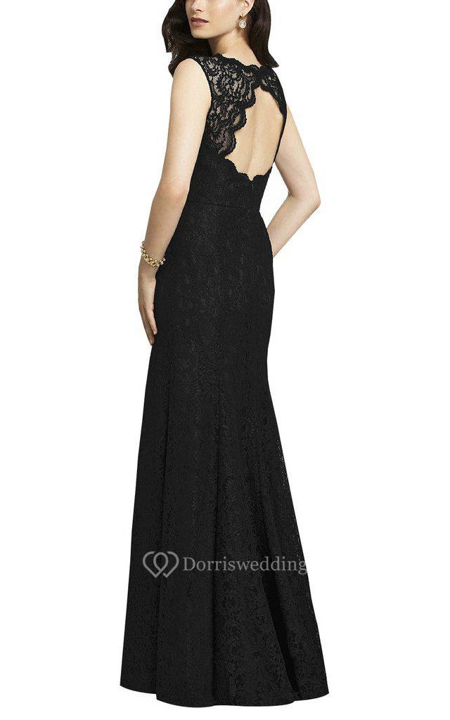 Illusion Lace Long Sheath Dress with Keyhole Back