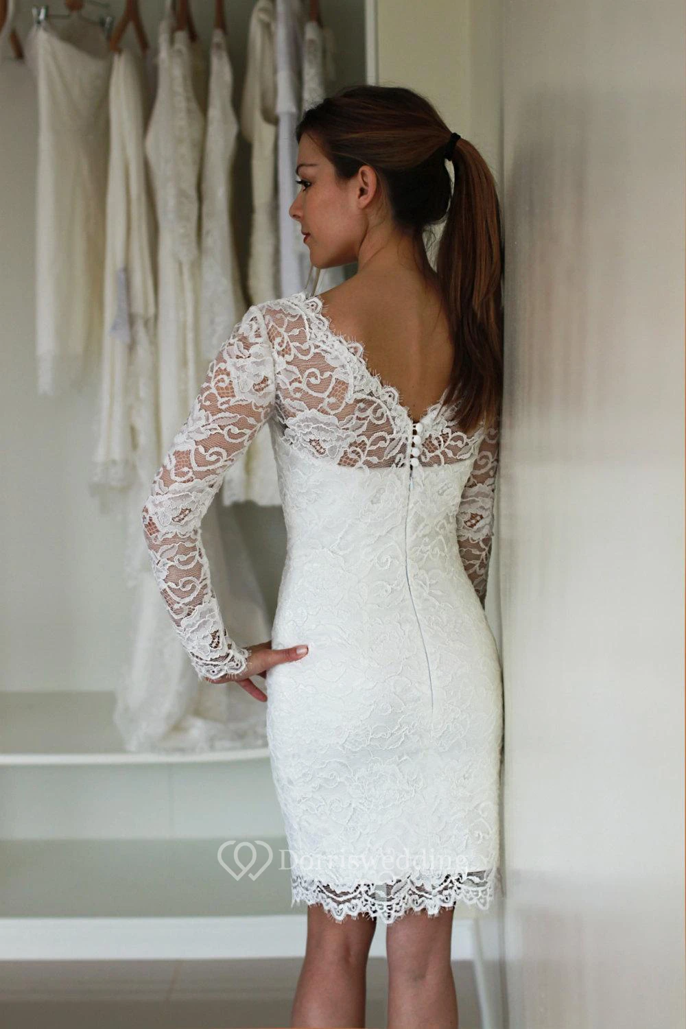 Absolutely love this dress. Had it made in knee-length and it is beautiful. Impeccably crafted. Dorris Wedding has done a good job! Can't wait to wear it!