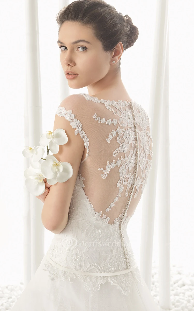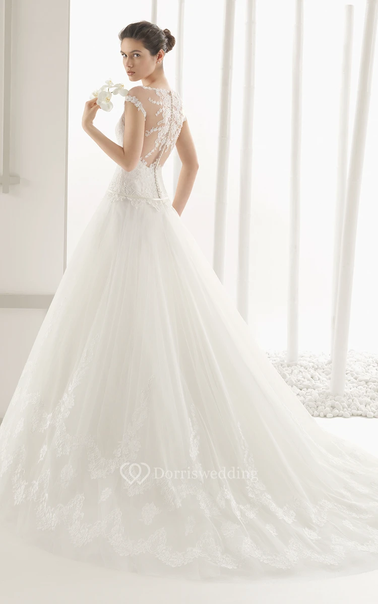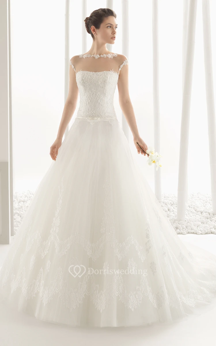 Illusion-Neck Back Lace Gown With Embroidery