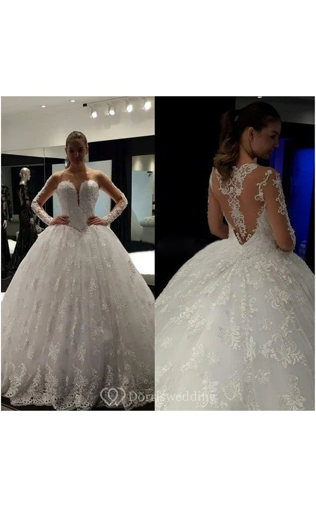 Illusion Neckline Sweetheart Lace Ball Gown With Illusion Back and Long Sleeves