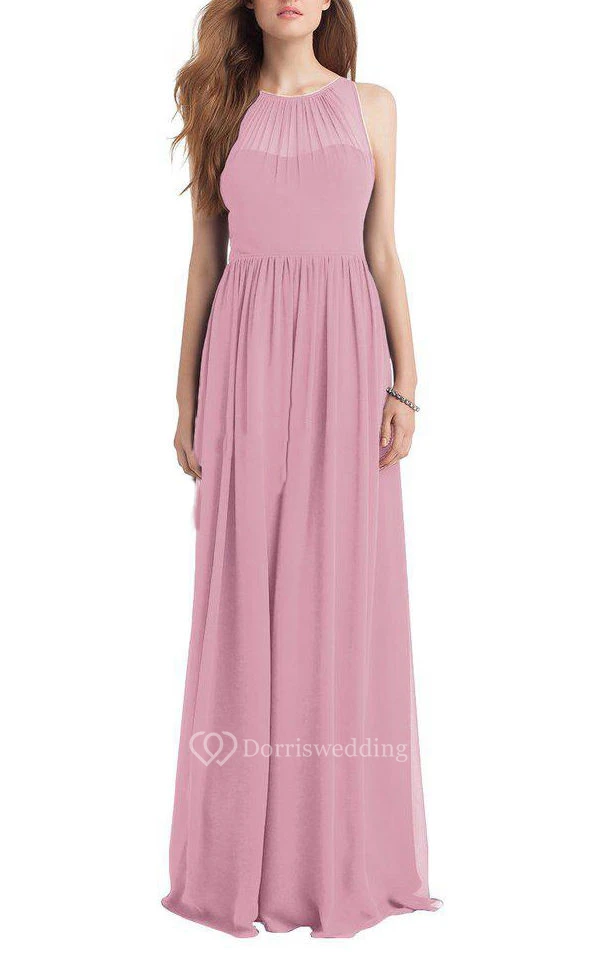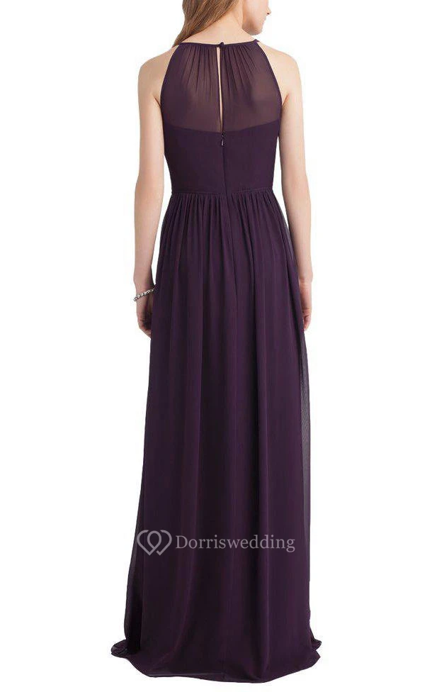 Illusion Ruched Long Bridesmaid Dress with Keyhole Back