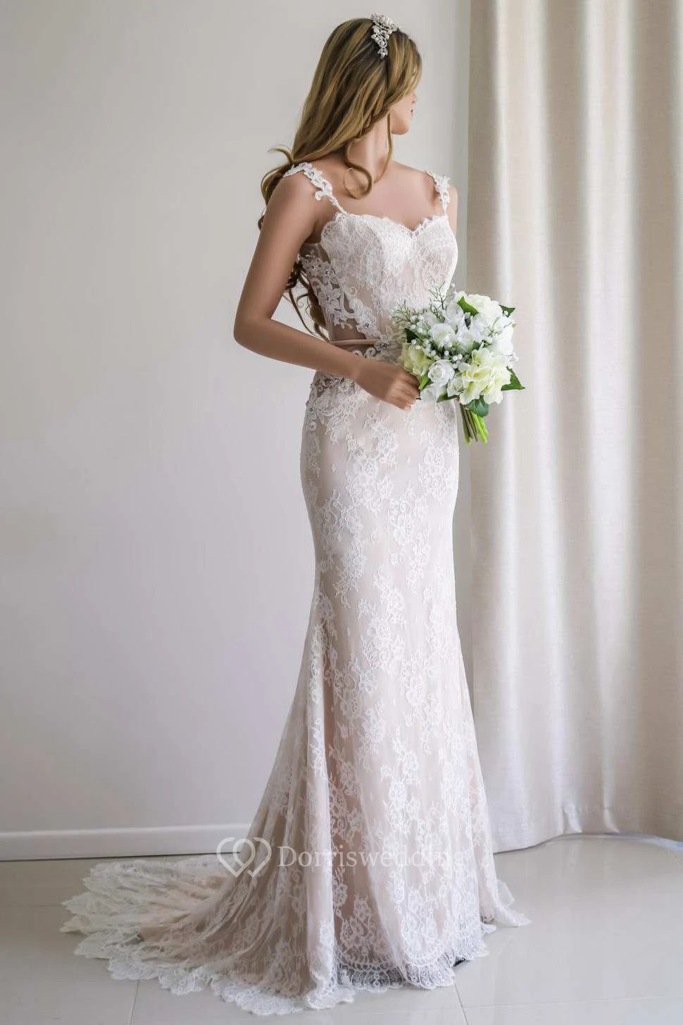 • Hemline/Train: Floor-length, Sweep/Brush Train