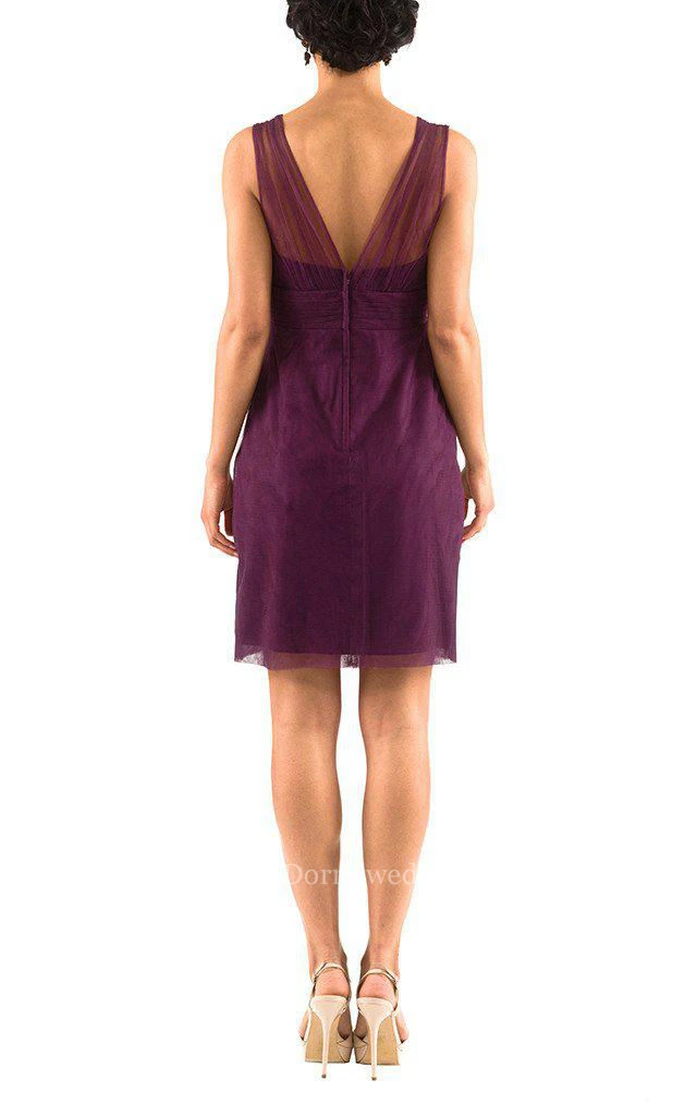 Illusion V-neck Tulle Sheath Short Bridesmaid Dress