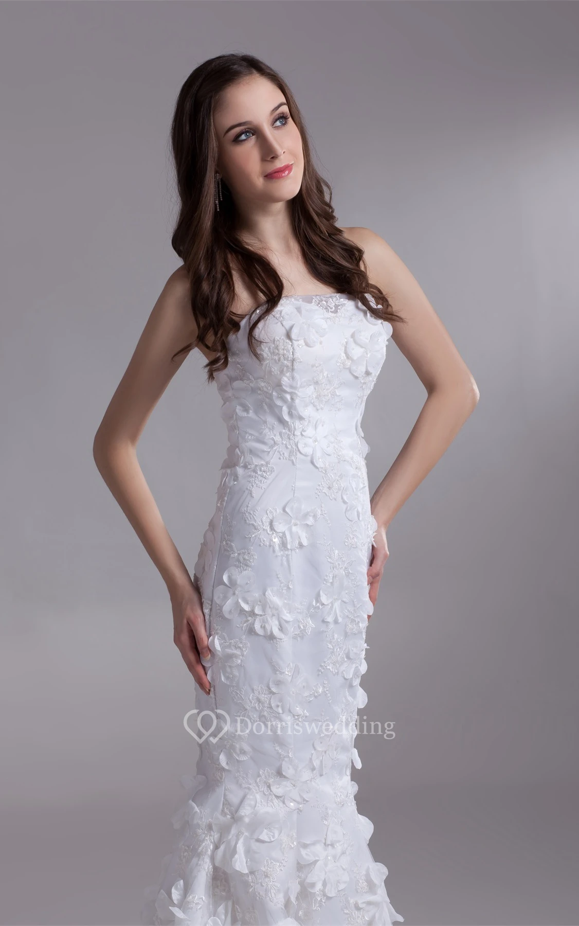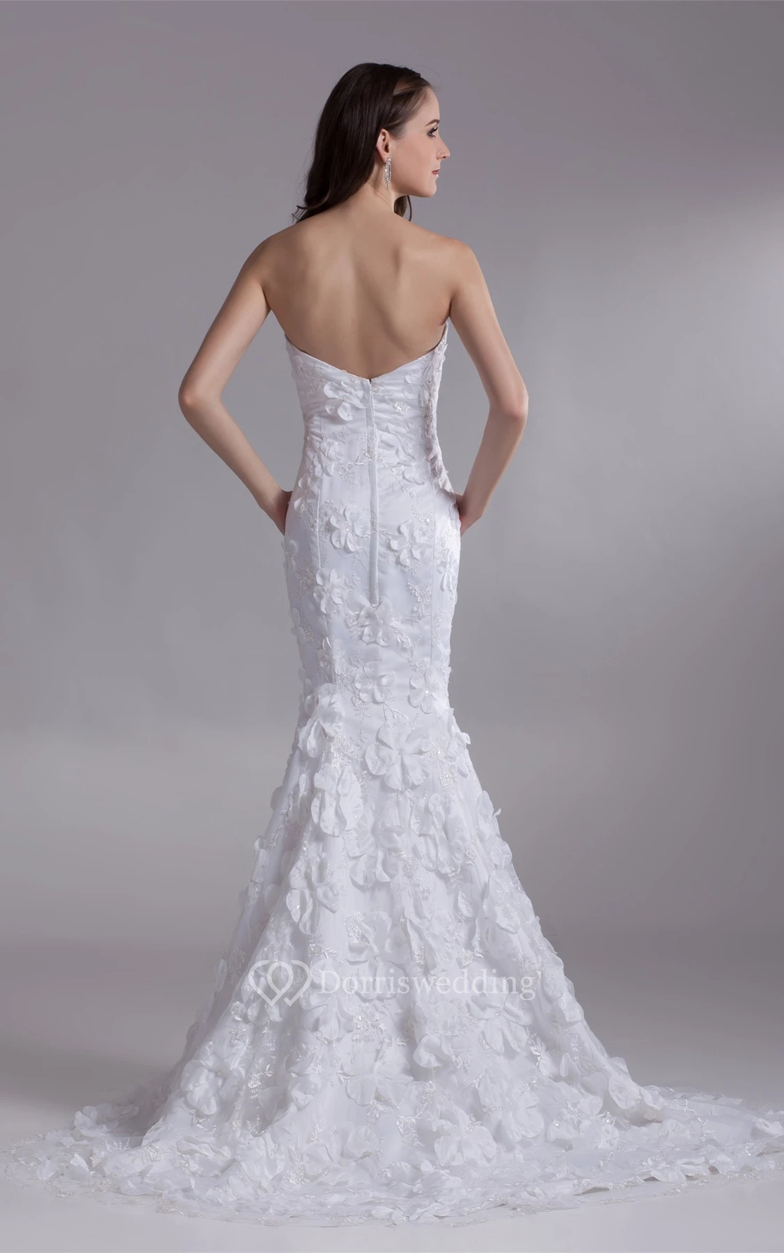 Impressive Strapless Satin Appliqued Trumpet Sleeveless Wedding Dresses