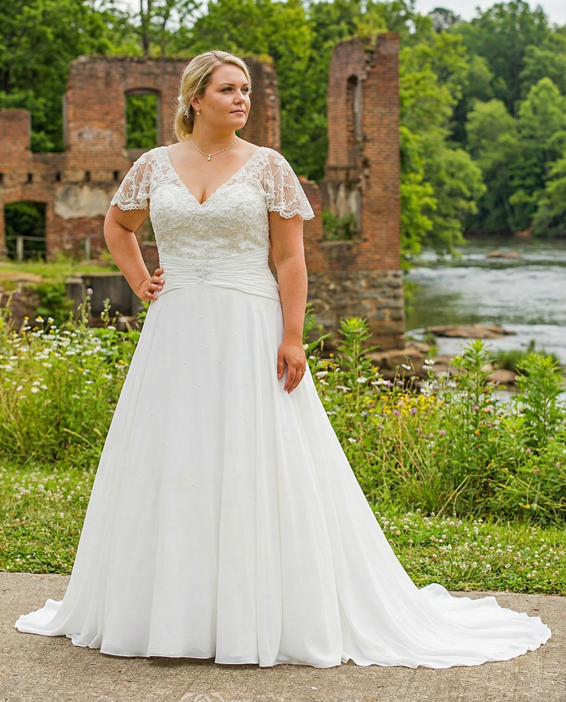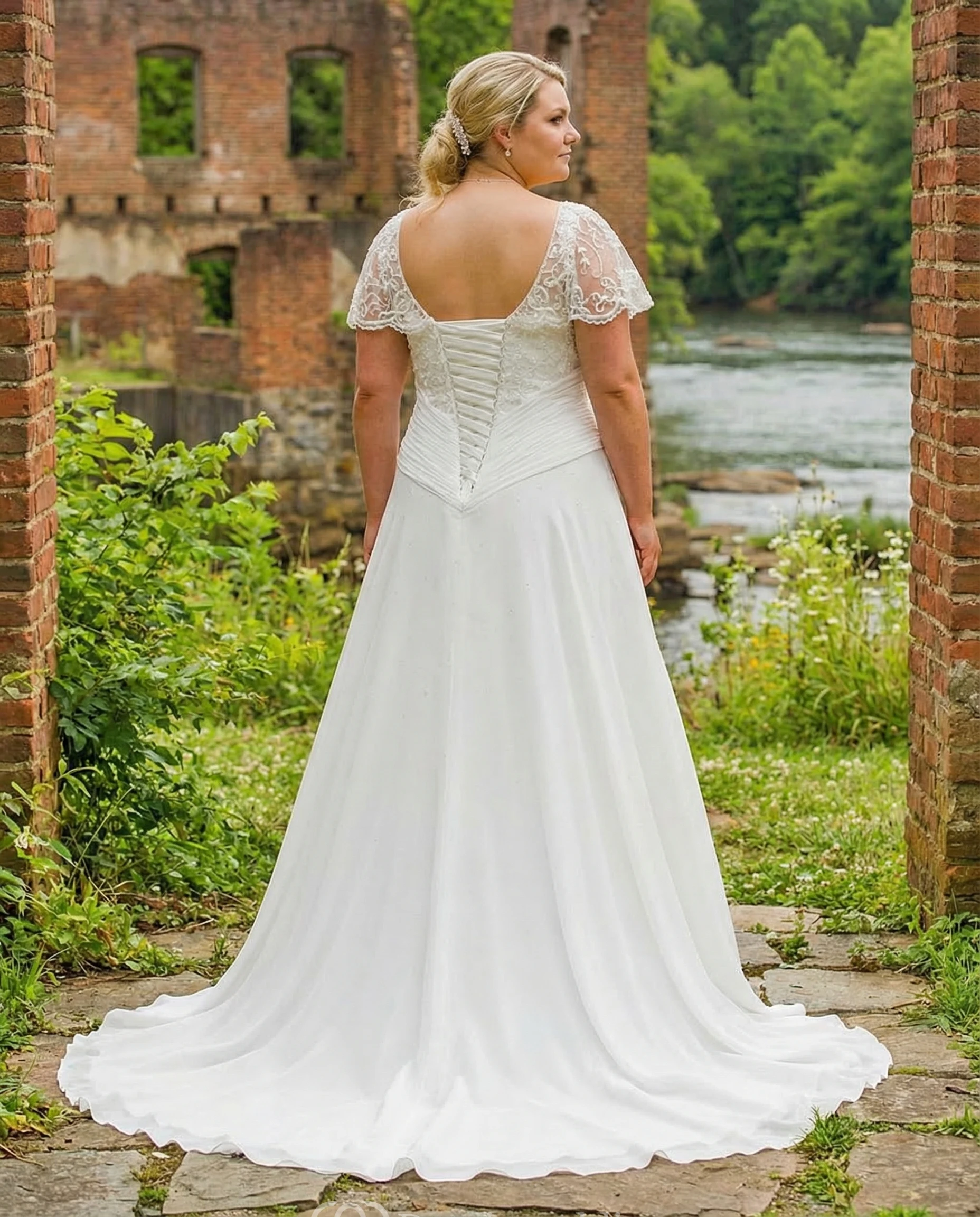 • Hemline/Train: Floor-length, Sweep/Brush Train