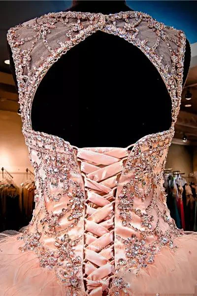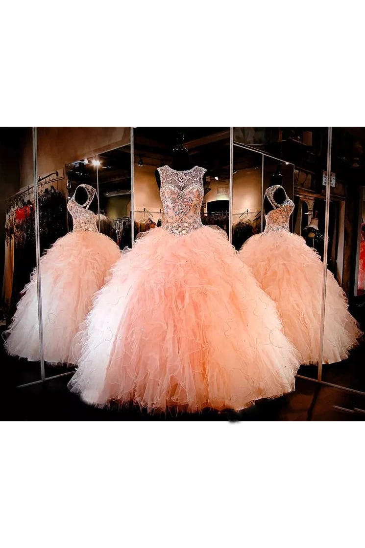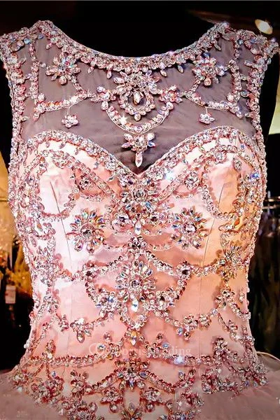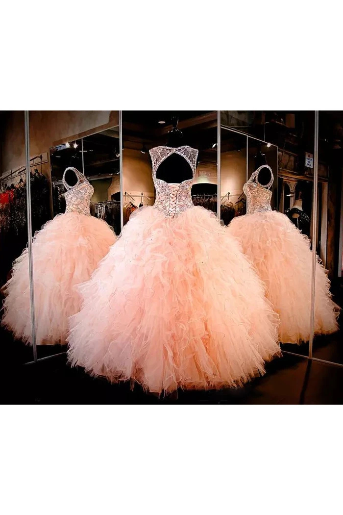 Jewel Ball Gown Floor-length Sleeveless Tulle Prom Dress with Lace-up Keyhole Back