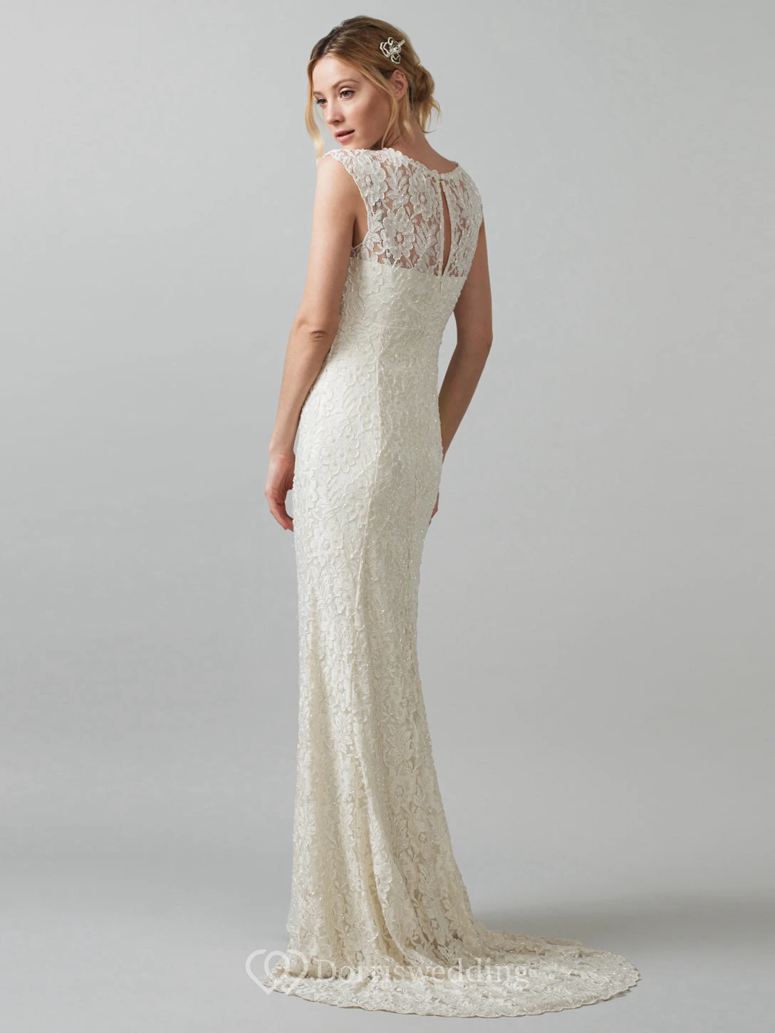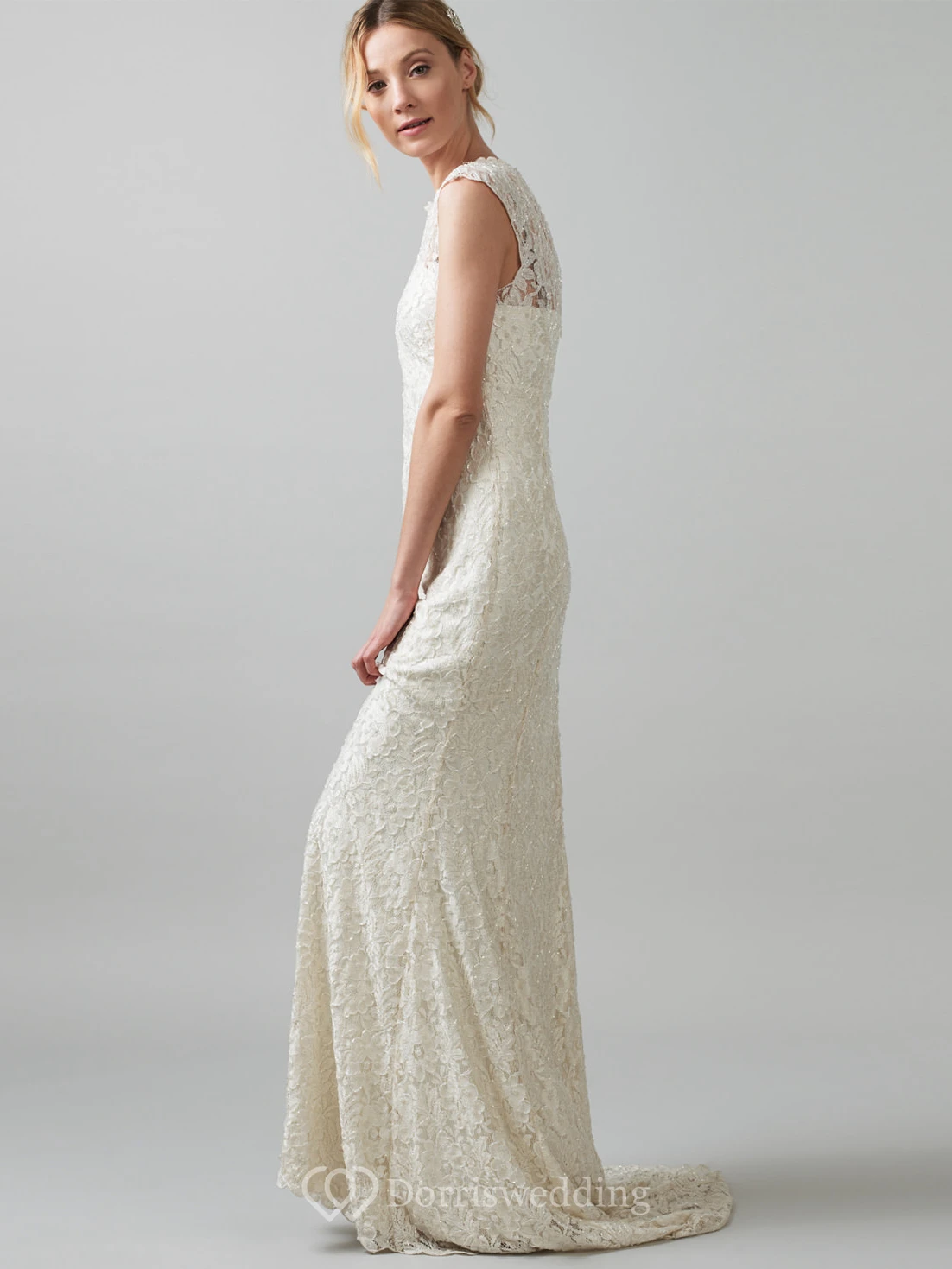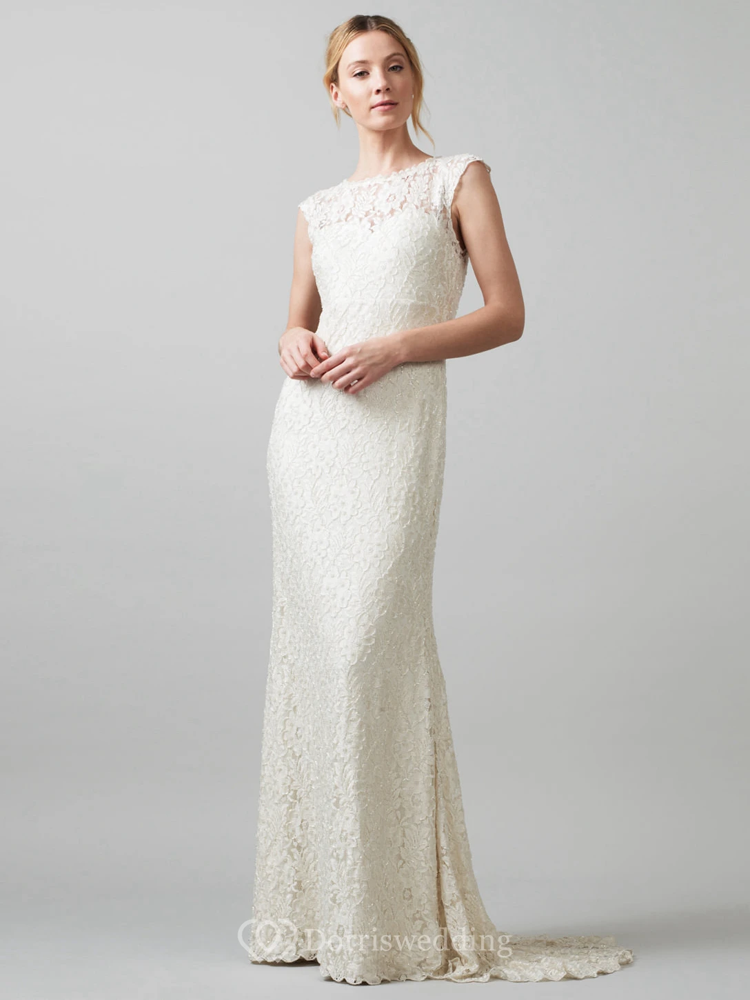 Jewel Maxi Appliqued Lace Wedding Dress With Sweep Train