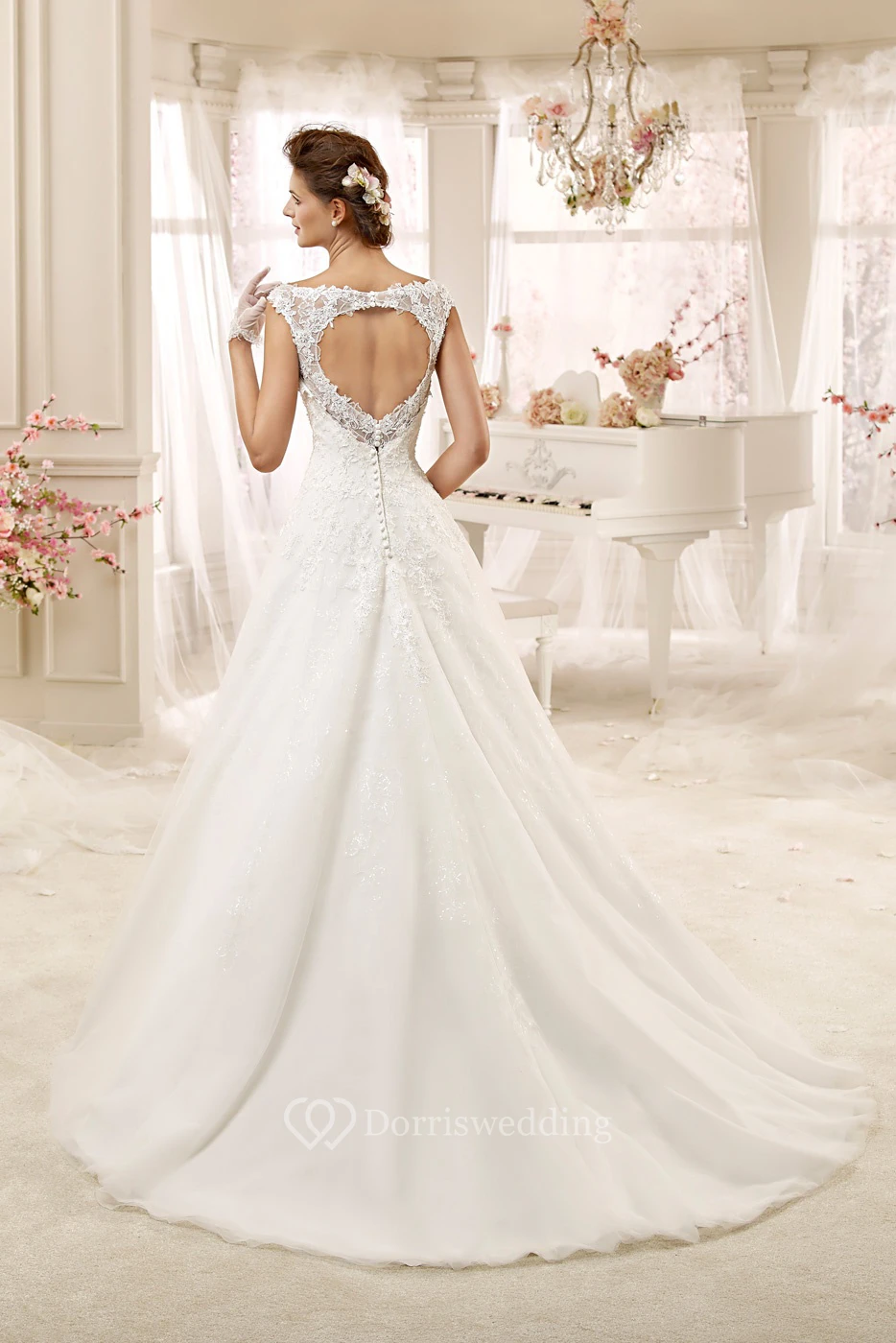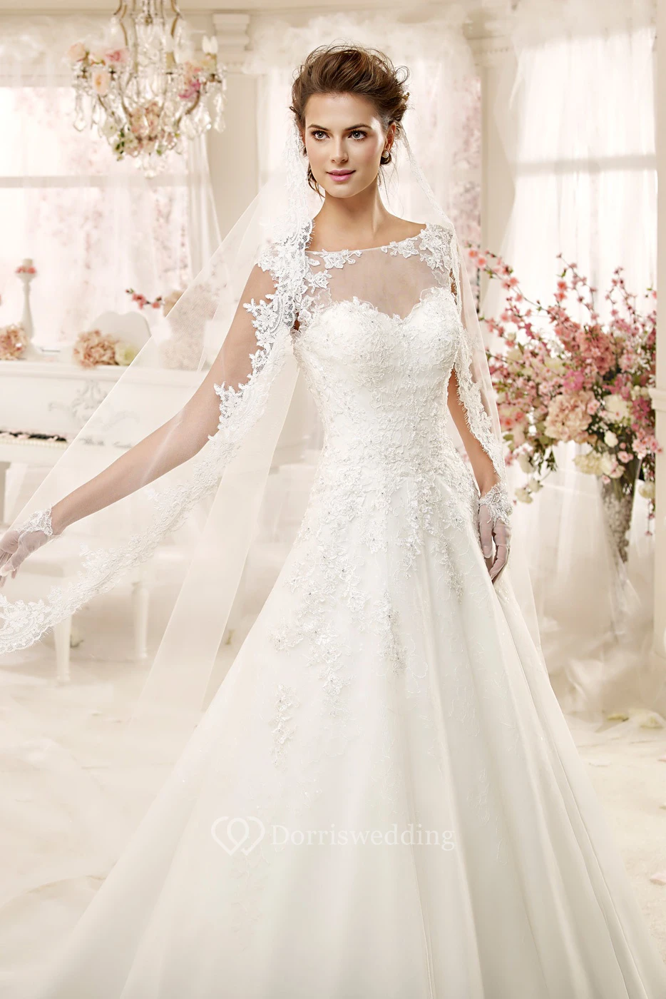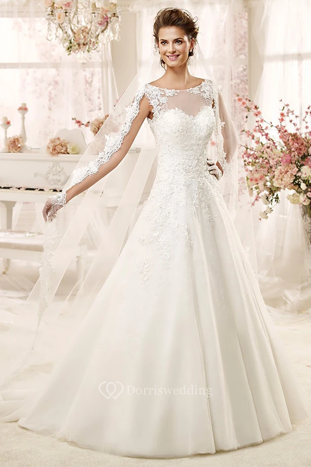Jewel-neck A-line Wedding Dress with Illusive Design and Keyhole Back