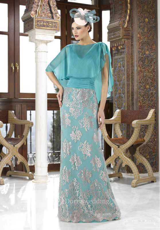 Jewel Neck Appliqued Cap Sleeve Tulle Mother Of The Bride Dress With Cape