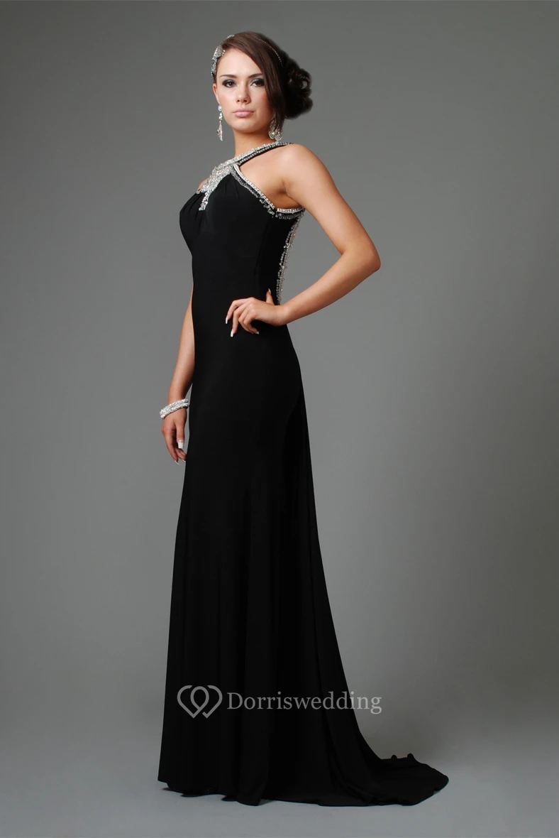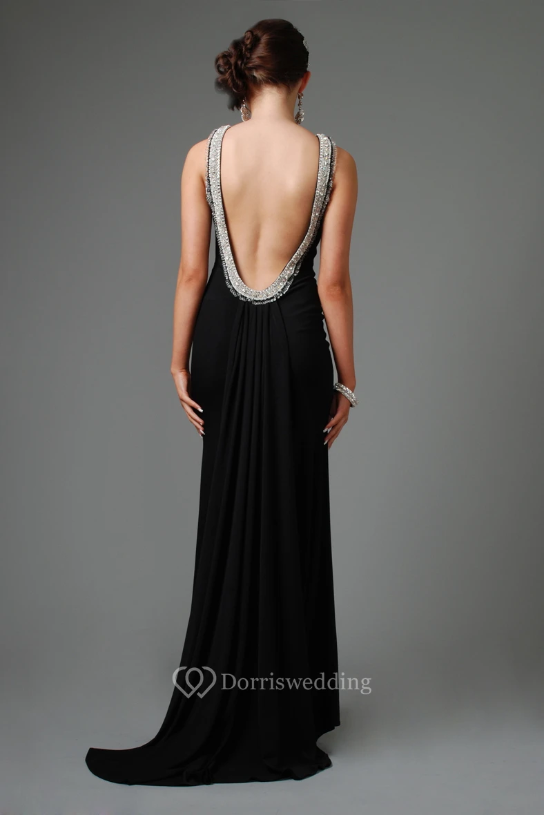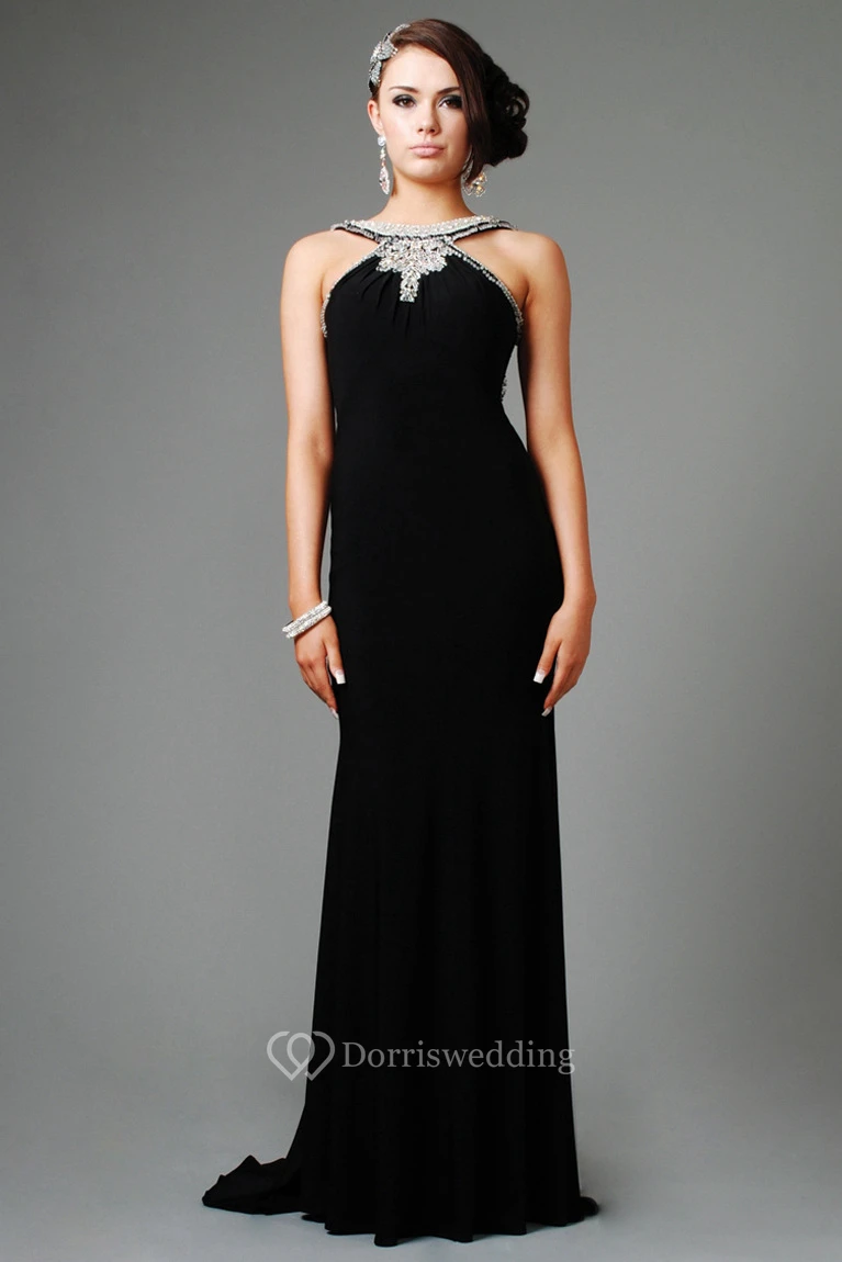 Jewel Neck Beaded Sleeveless Chiffon Evening Dress