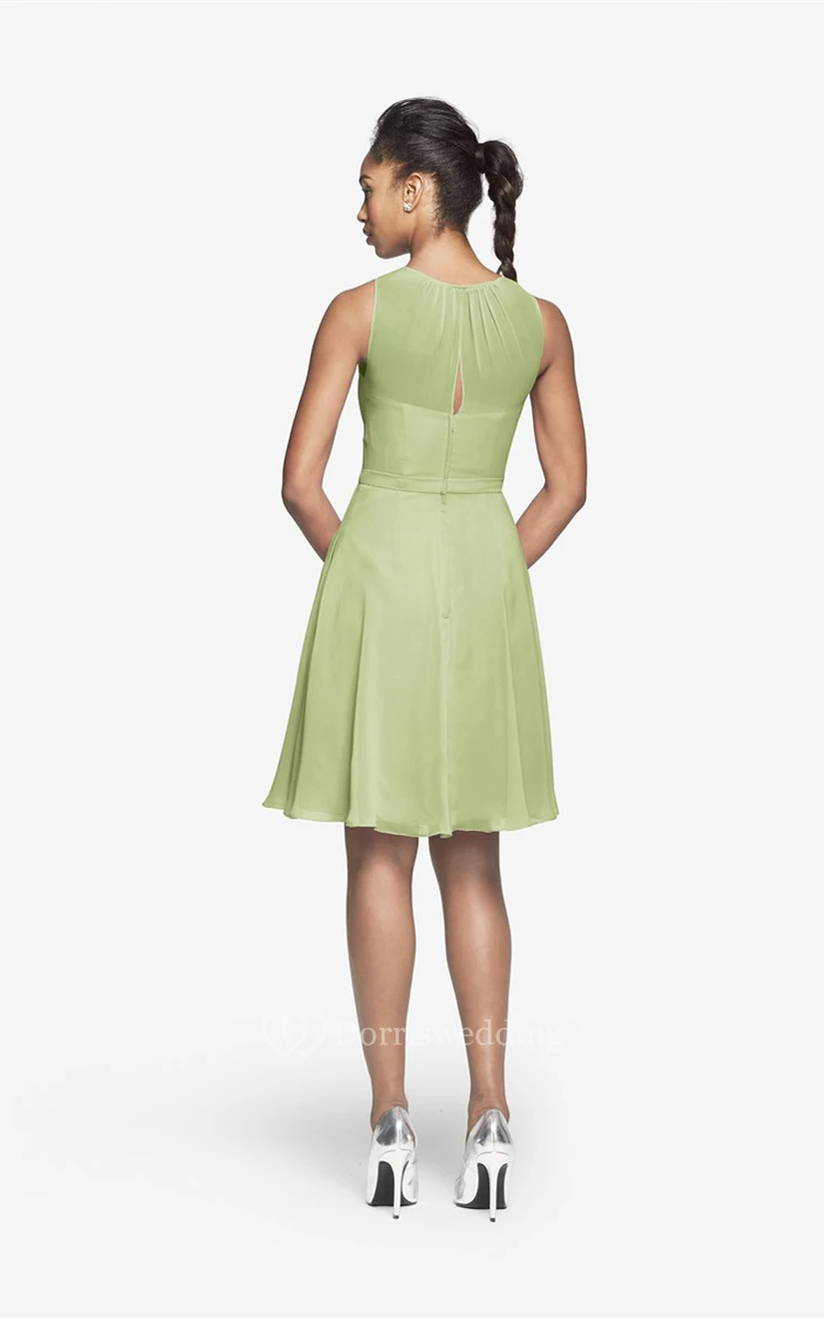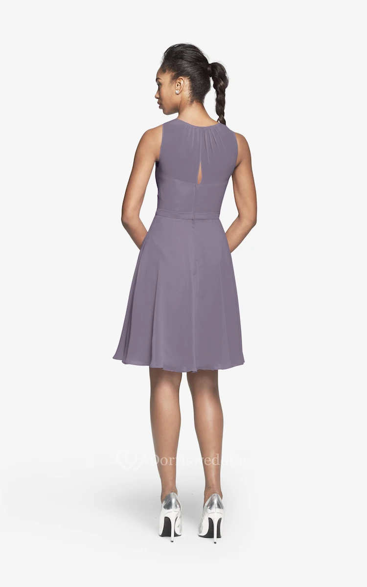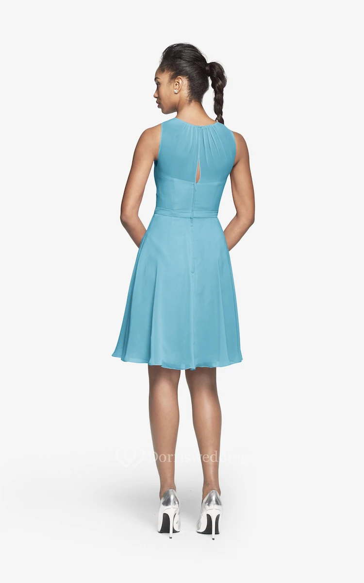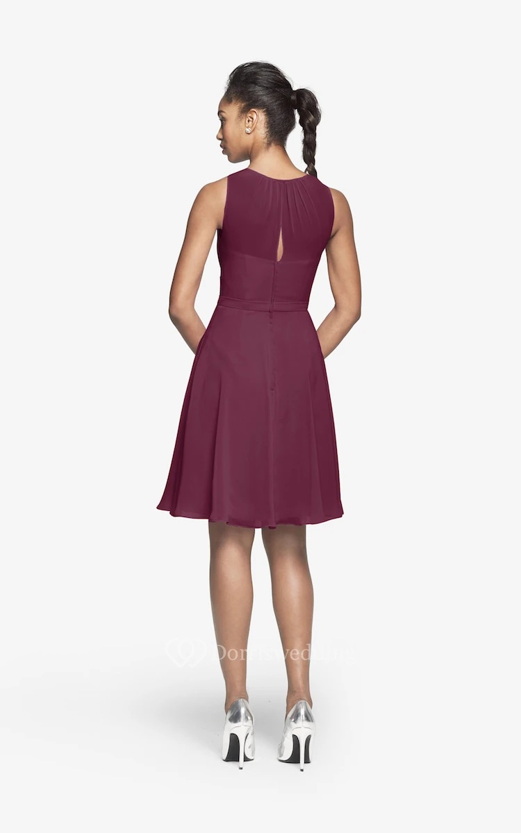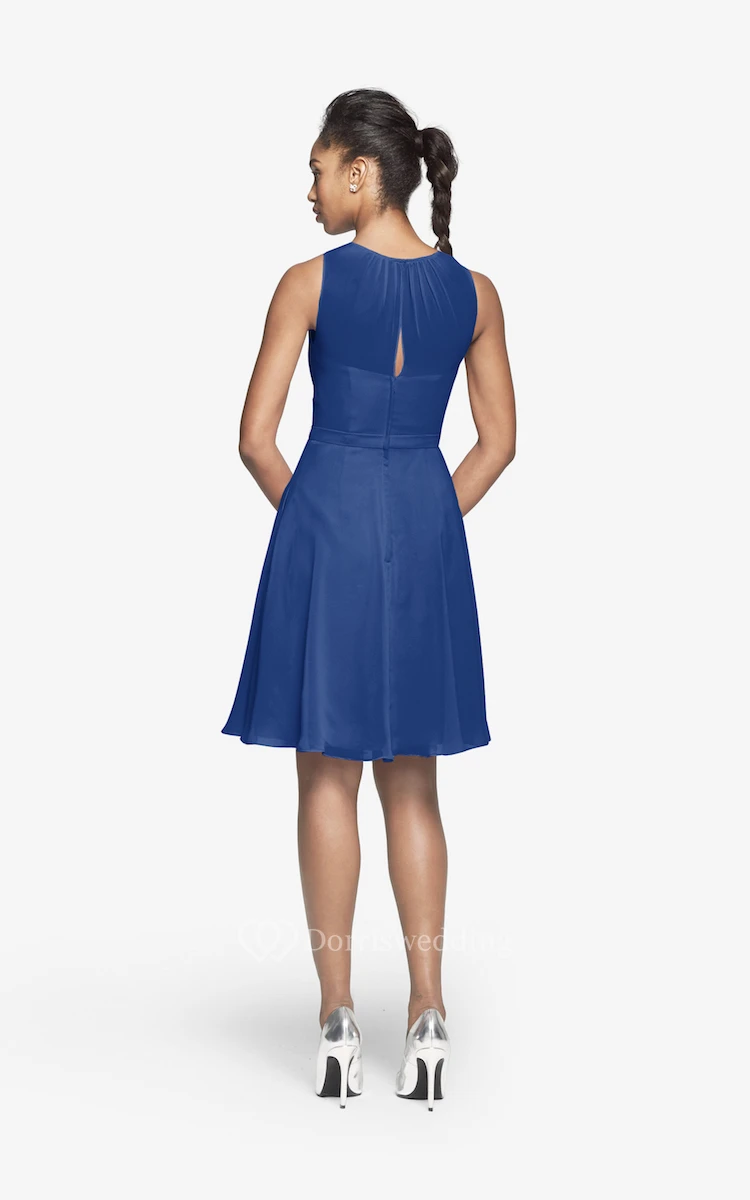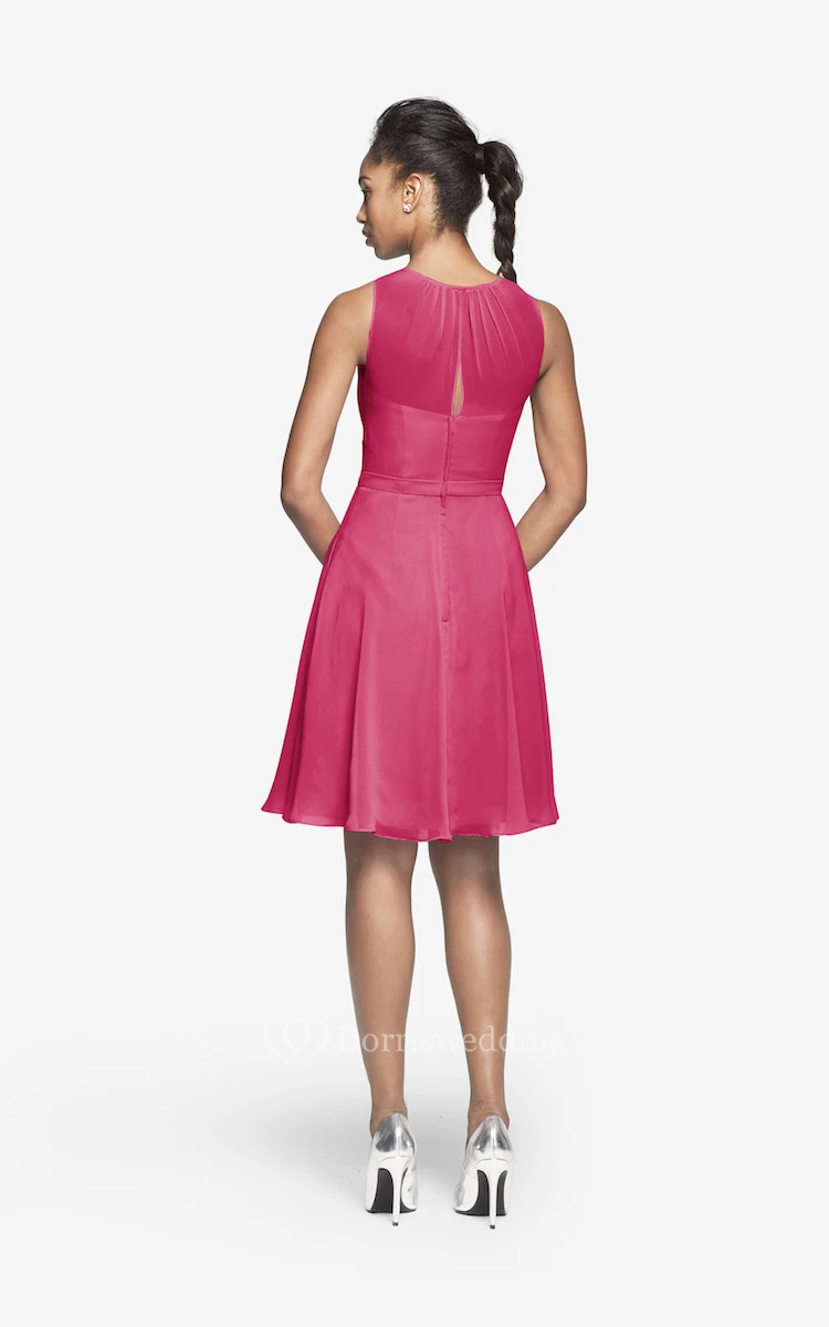 Jewel-Neck Chiffon Short Dress With Keyhole Back