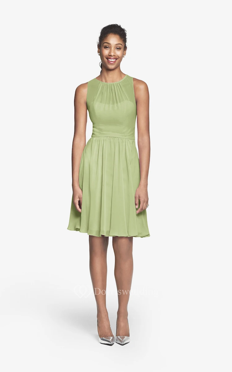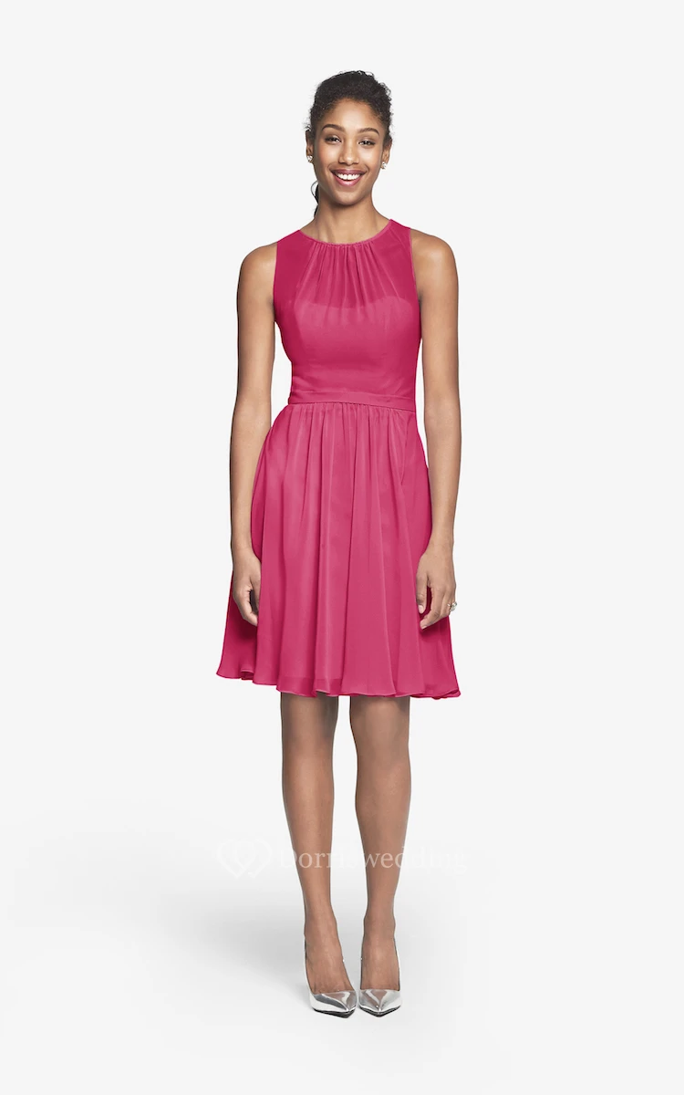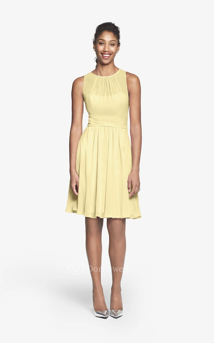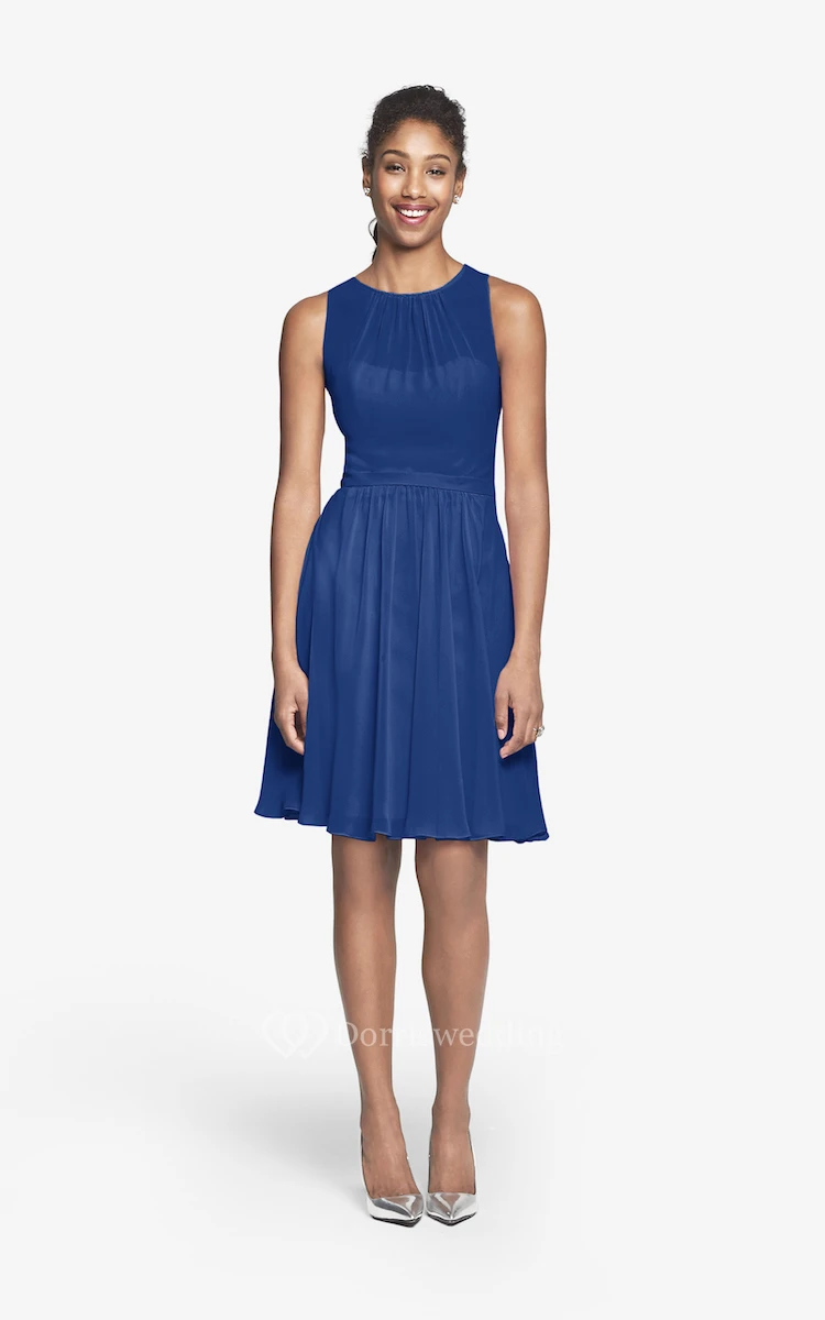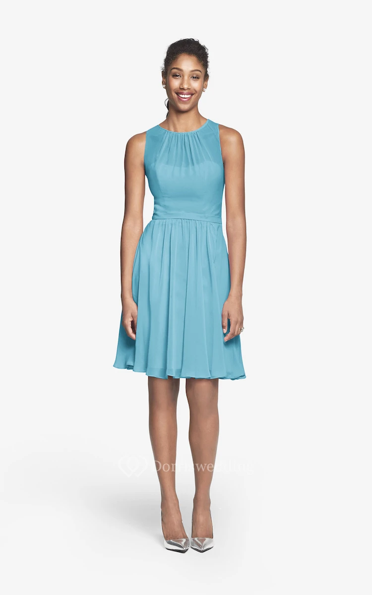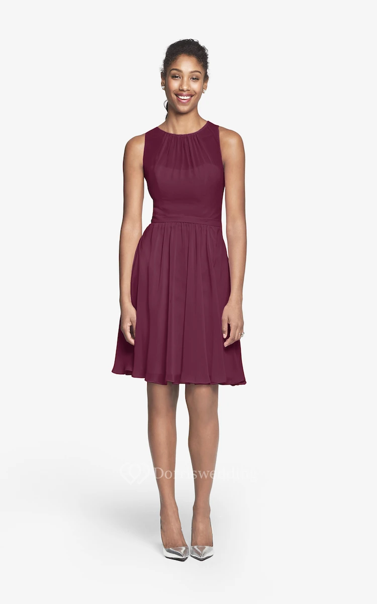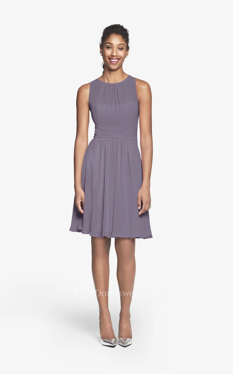 Jewel-Neck Chiffon Short Dress With Keyhole Back