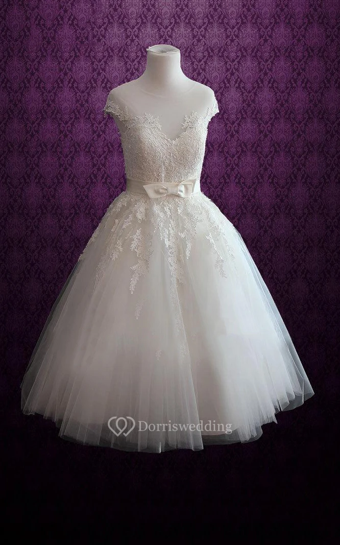 • Hemline/Train: Tea-length
